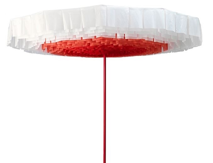Está diseñado con pétalos de tela para conseguir un ambiente relajado bajo la sombra y disfrutar de los tonos de color por encima. El viento hace que los pétalos bailan para producir un efecto hipnótico. Diseño muy actual, creativo, vistoso y moderno de fácil limpieza. El pie no está incluido en el precio.