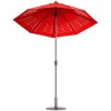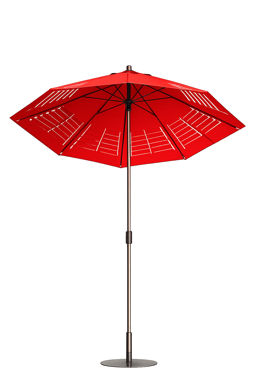 Parasol modelo Mayabeque con un diámetro de 245cm, estructura en acero inoxidable con 8 barillas y cubierta de poliéster, muy adecuado para exteriores como terrazas, restauración, cafeterías. Diseñado con unas líneas biseladas en el paño del paraguas, la tela puede soportar el estrés con facilidad. Todo esto crea un intrigante juego de luces y sombras. Diseño muy actual, creativo, vistoso y moderno de fácil limpieza. Para uso contract y hostelería.