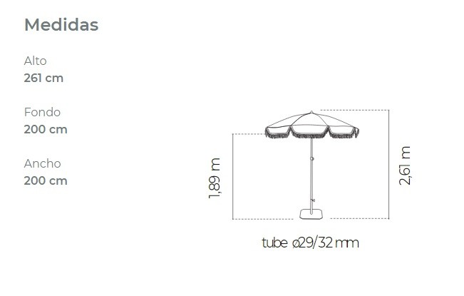 El parasol Toscana está fabricado con estructura de aluminio lacado y tejido poliester 220 gr.