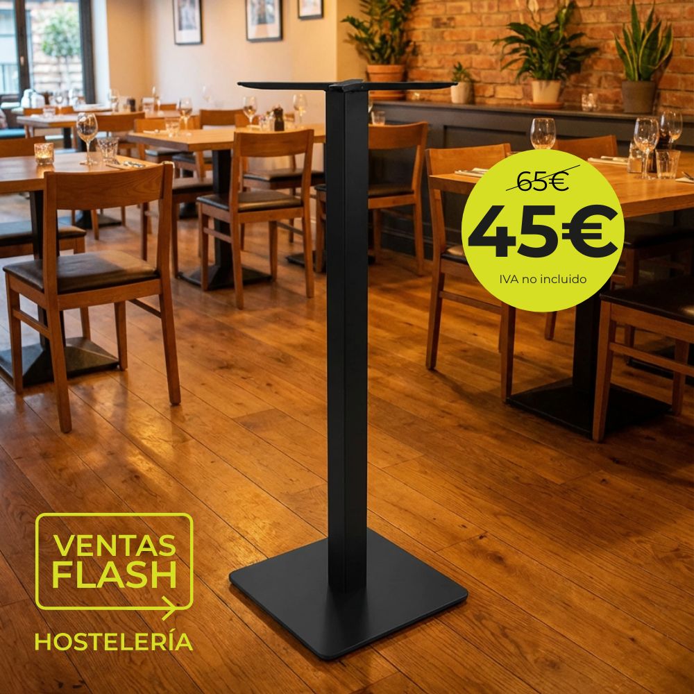 Pie de mesa alto cuadrado de hierro negro para Horeca o contract.