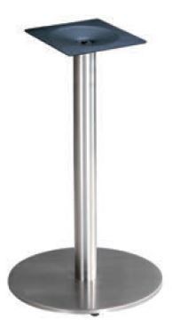 Pie de mesa alto, fabricado en acero inoxidable, base redonda y columna en forma de tubo redondeada .