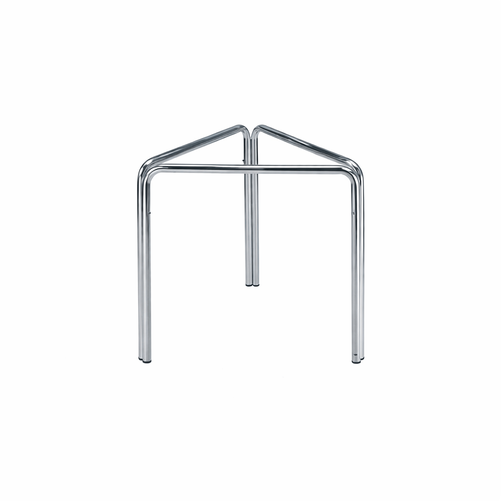 Pie de mesa con tres patas, fabricado en aluminio, ideal para uso con tableros redondos.