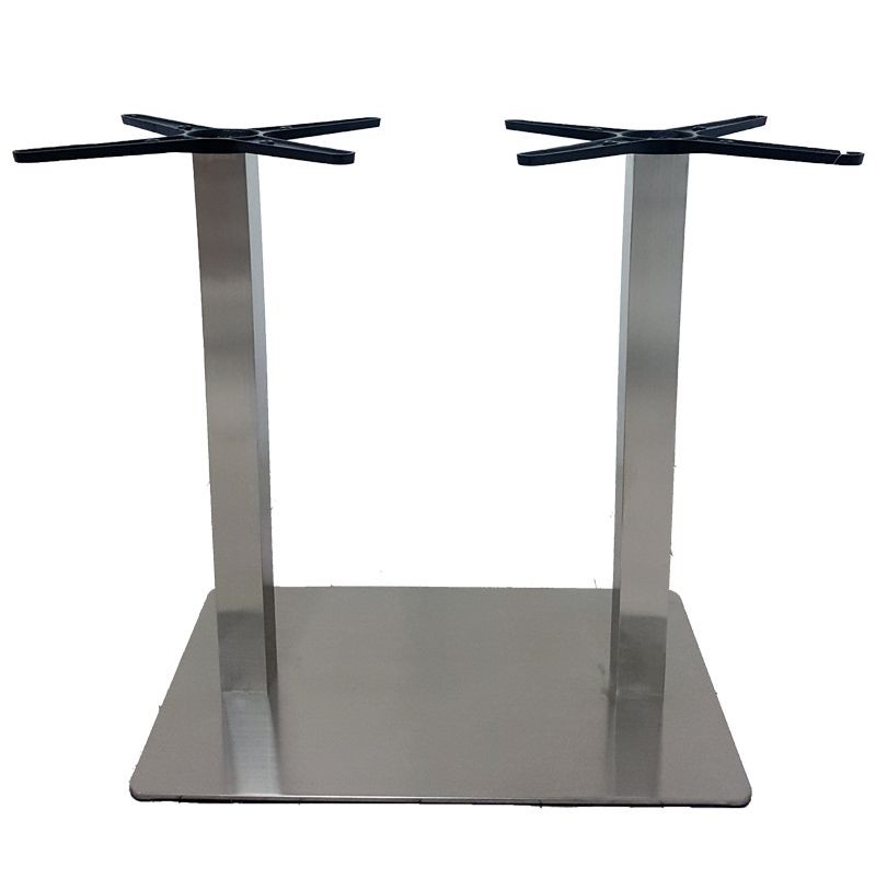 Pie de mesa doble E24 fabricado en acero inoxidable, con base rectangular y doble tubo cuadrado.