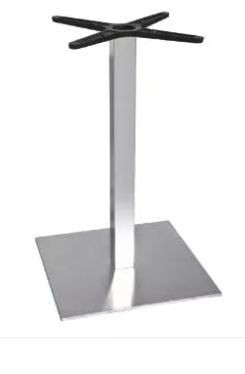 Pie de mesa E20 fabricado en acero inoxidable y con base y tubo cuadrado.