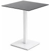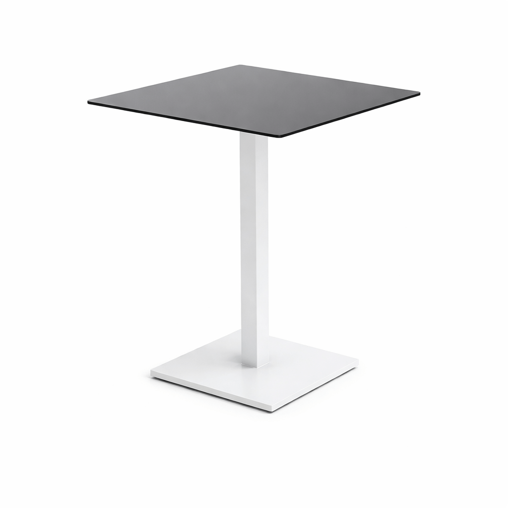 El pie de mesa está fabricado en hierro pintado blanco con base a cuadrada y tubo cuadrado.
