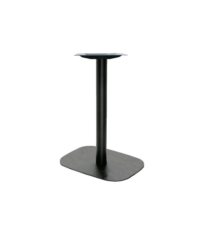Pie de mesa en hierro pintado negro con base rectangular con cantos redondeados.