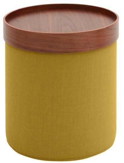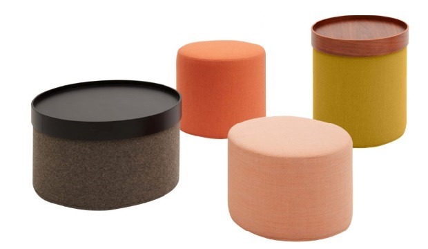 Pouff Drum de Softline, fabricado con espuma celular de alta elasticidad y tapizado con posibilidad de ponerle bandeja.