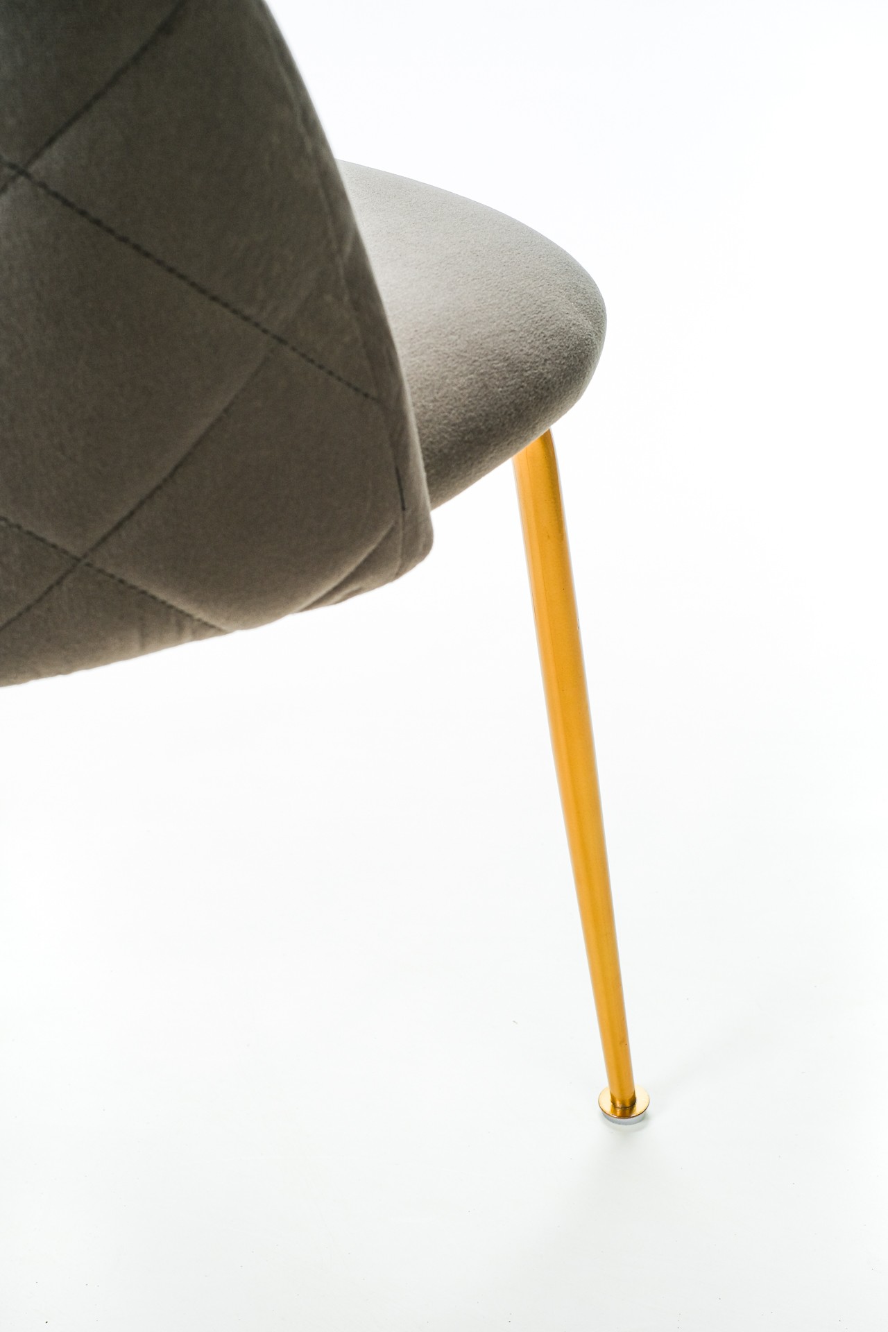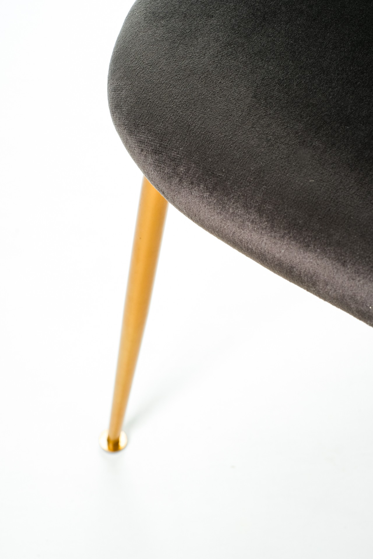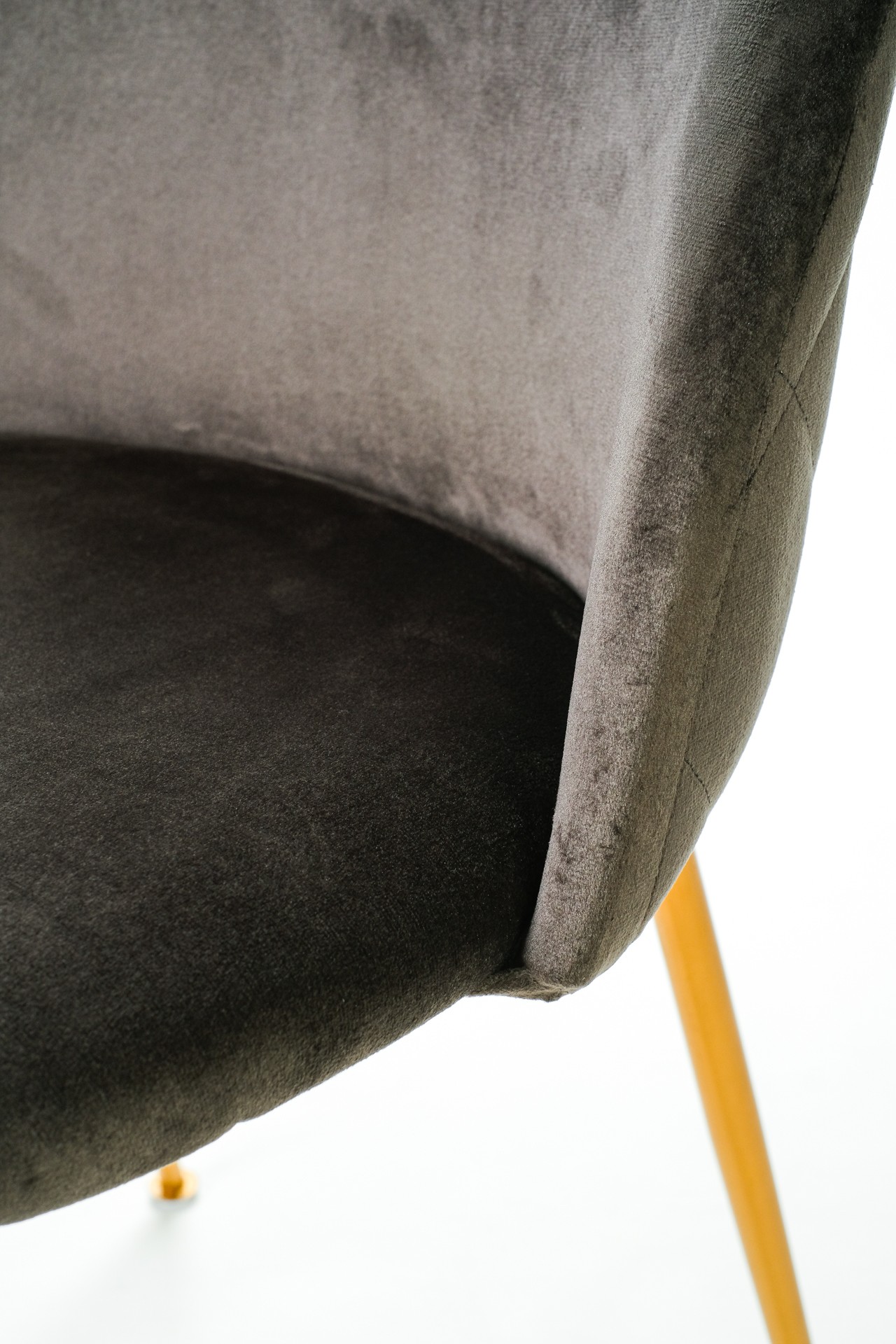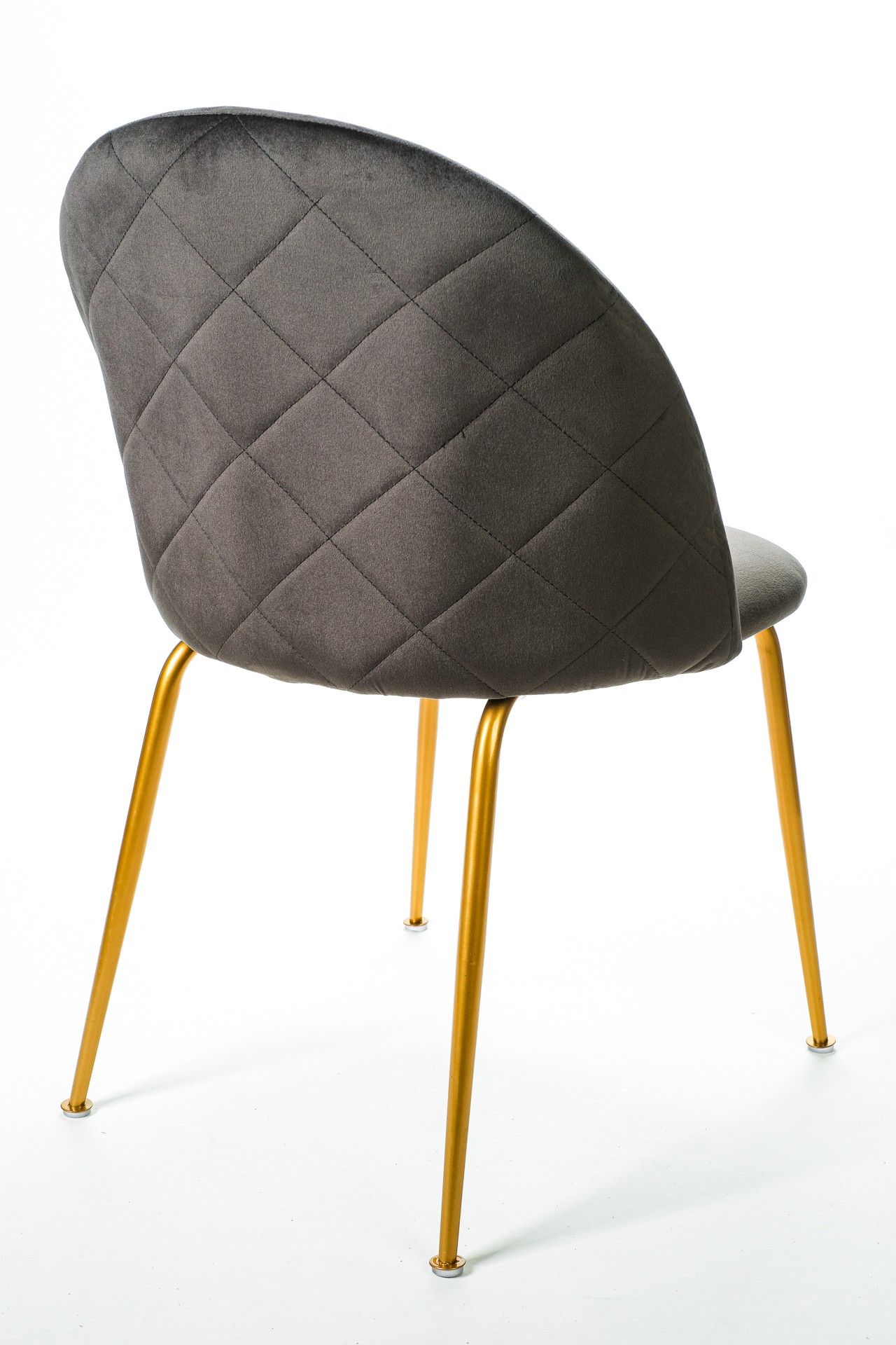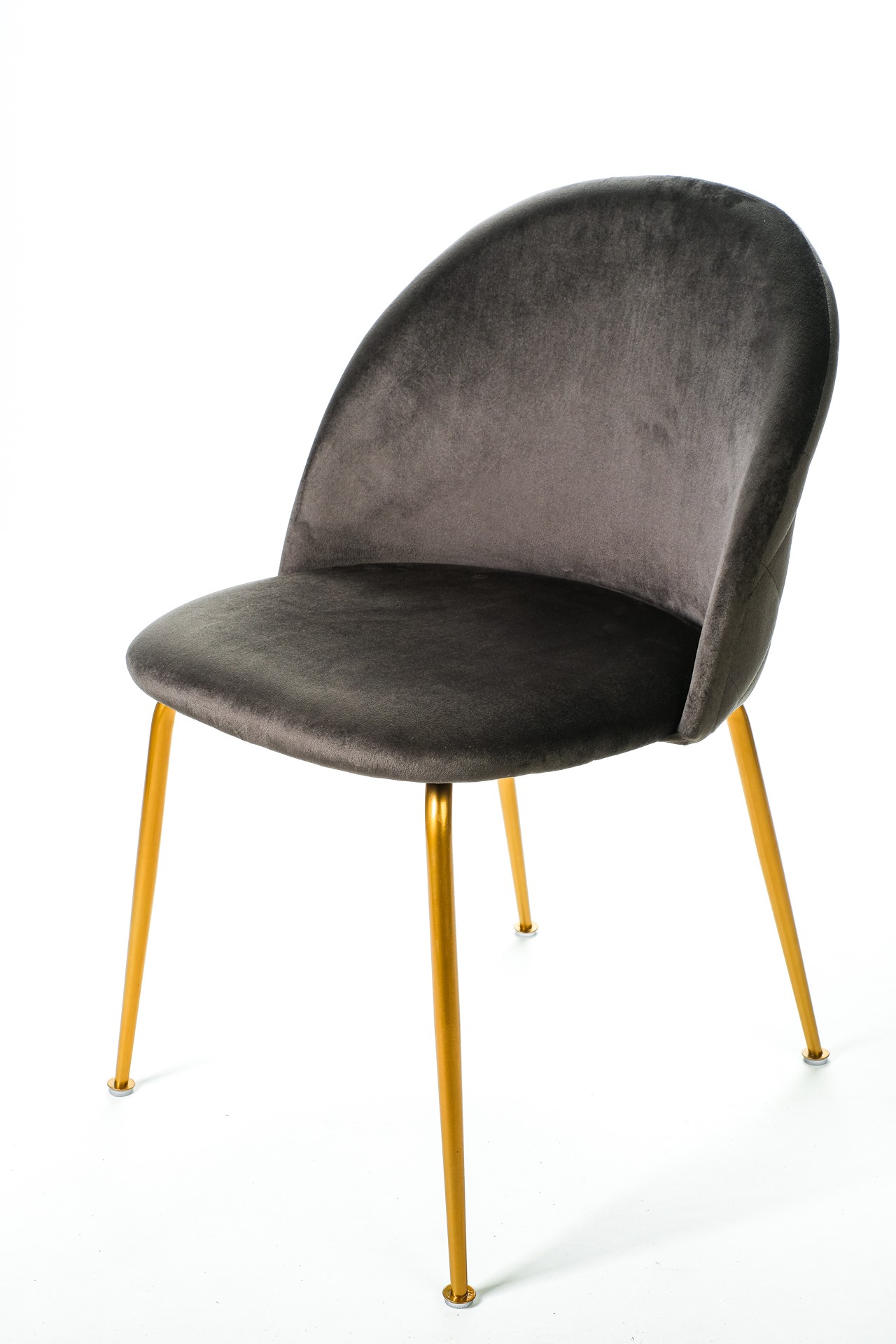 Silla Arles en terciopelo gris y silla en dorado, elegante y sencilla.
