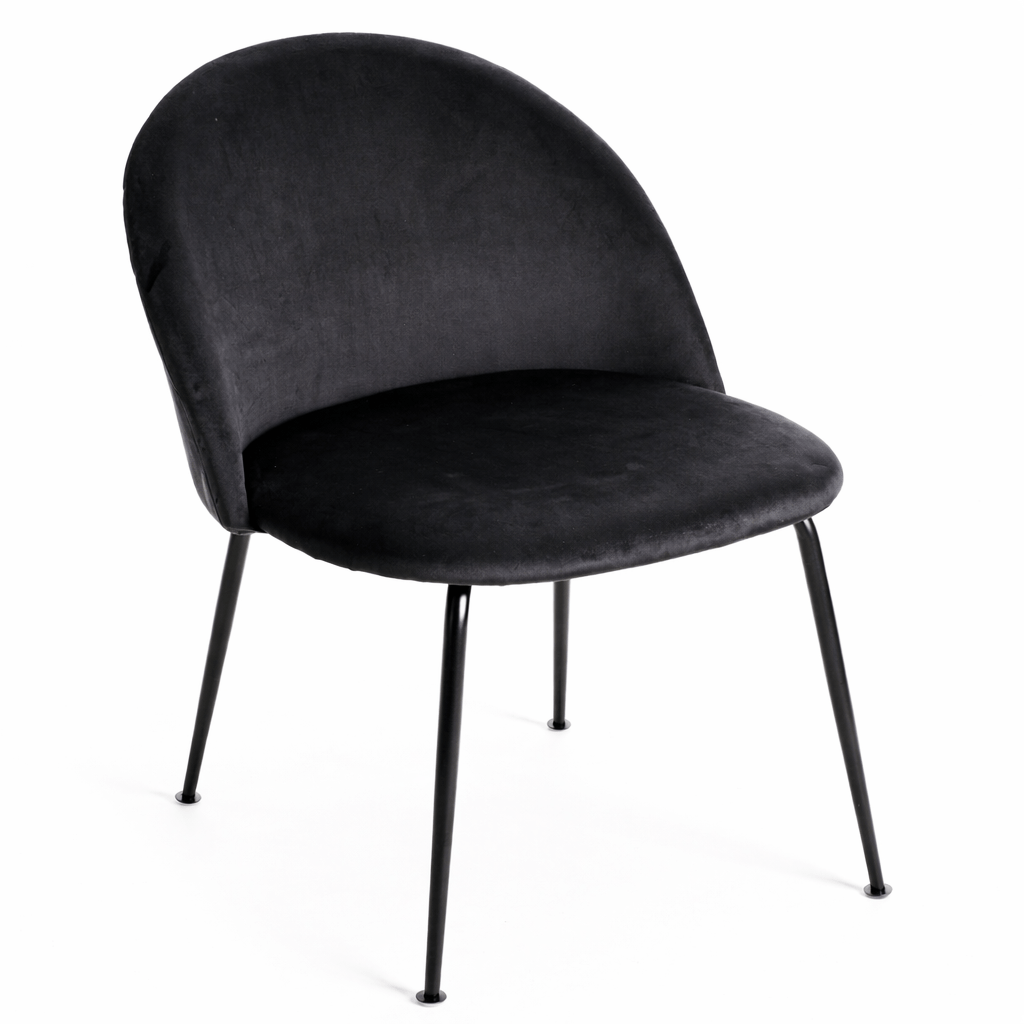 Silla Arles fabricada en terciopelo negro y patas negras. Una silla elegante y sencilla.
