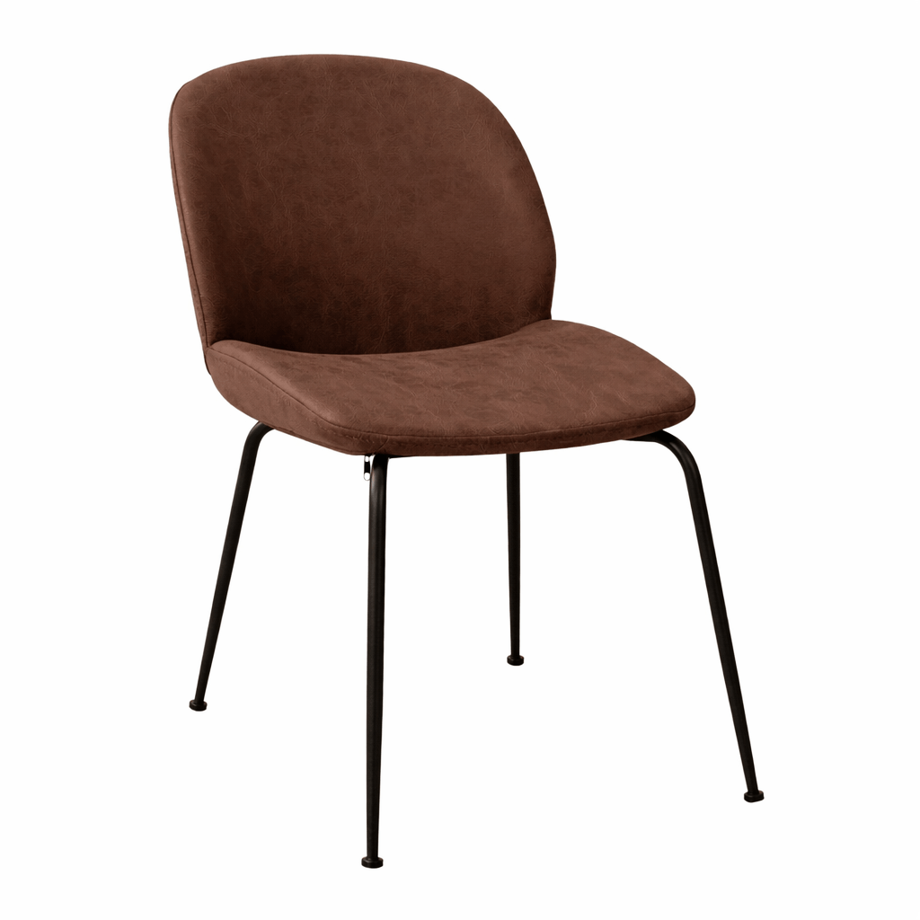 Silla Art deco tapizada 100% polipiel marrón y pata en acero negro.