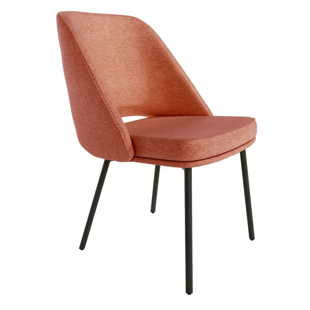 Silla Beirut en color salmón, fabricada en polipropileno y patas metal a juego.