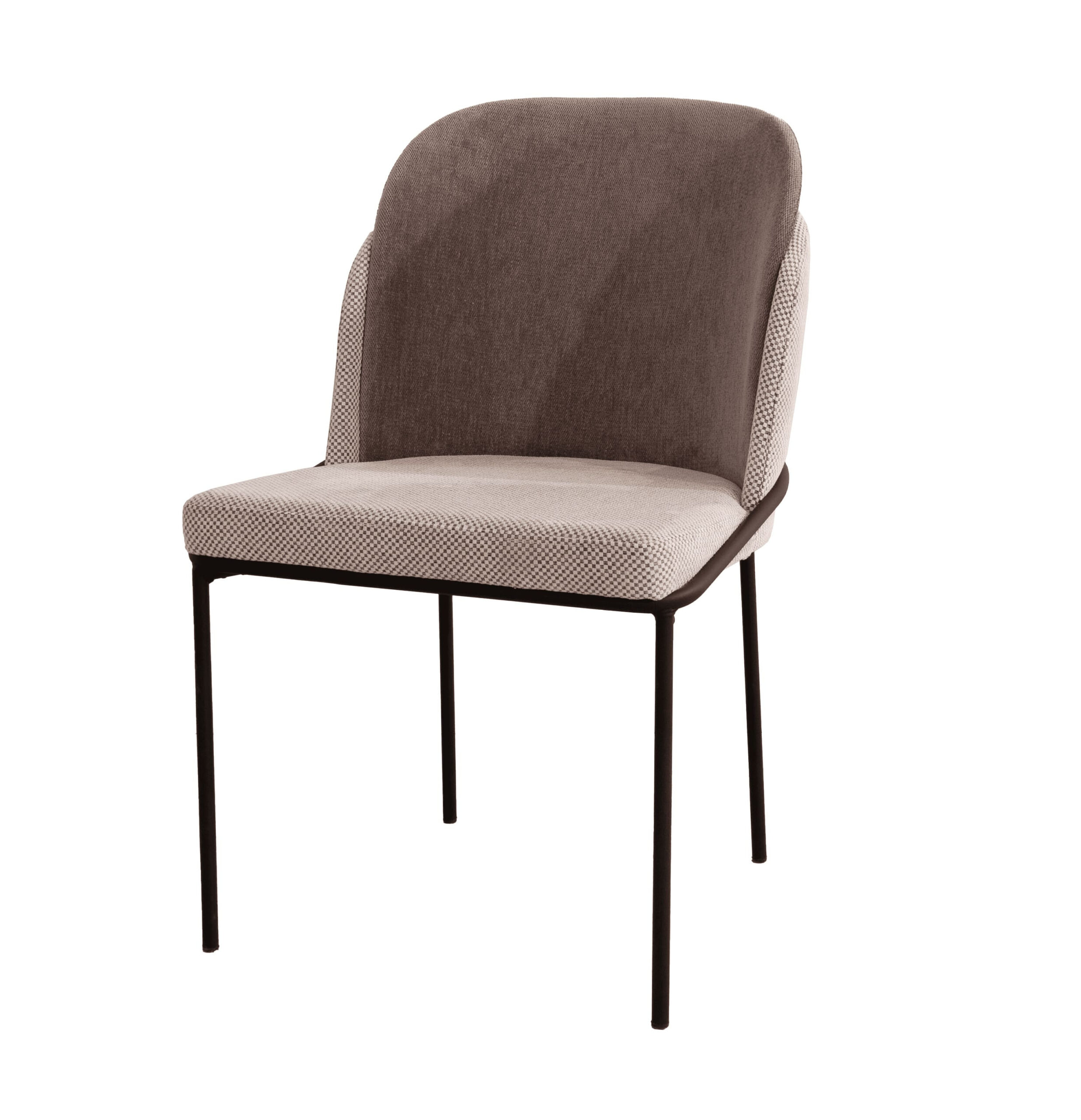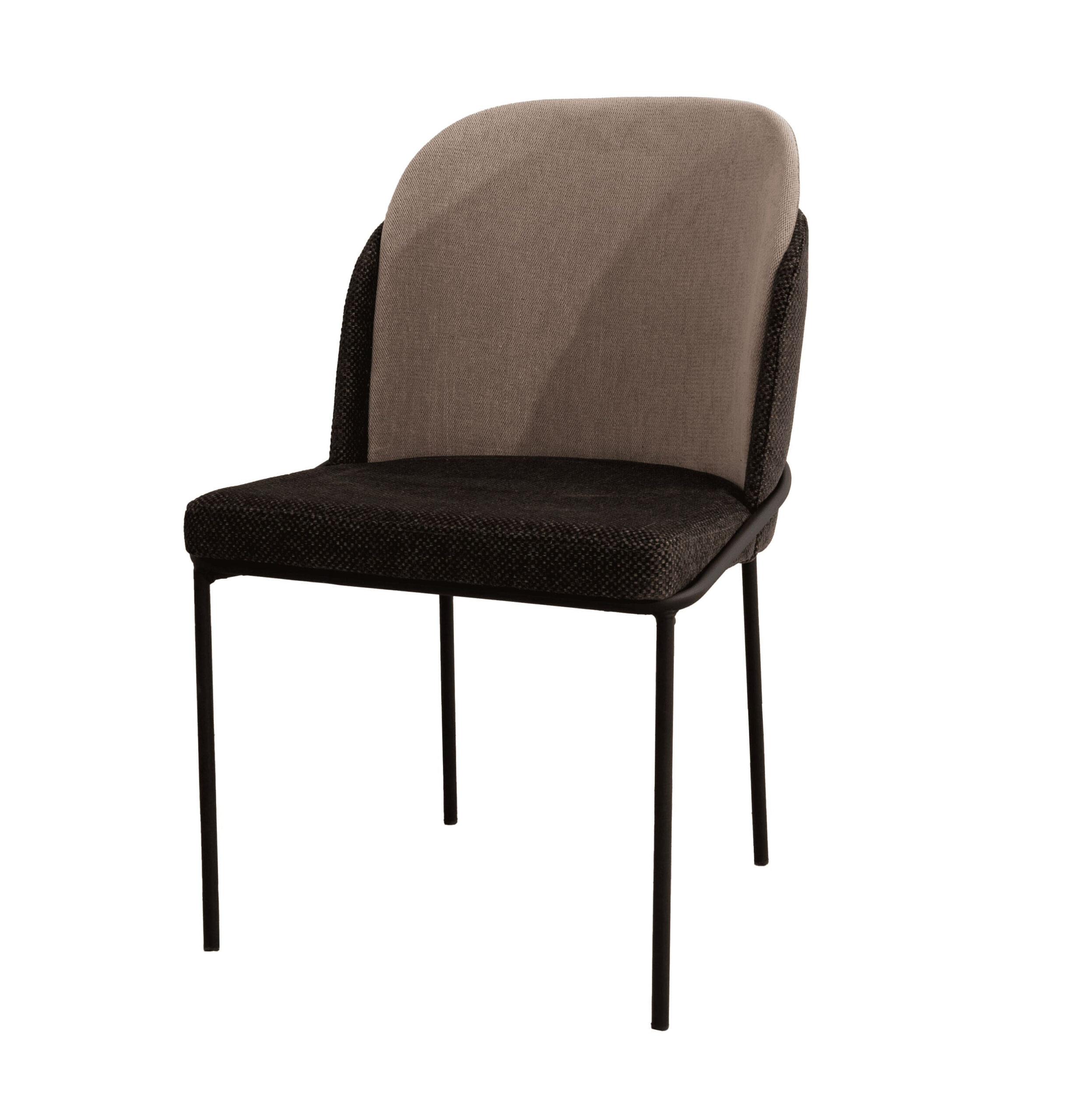 Silla Bergen tapizada 100% en poliéster en crudo-tostado y chasis de acero negro.