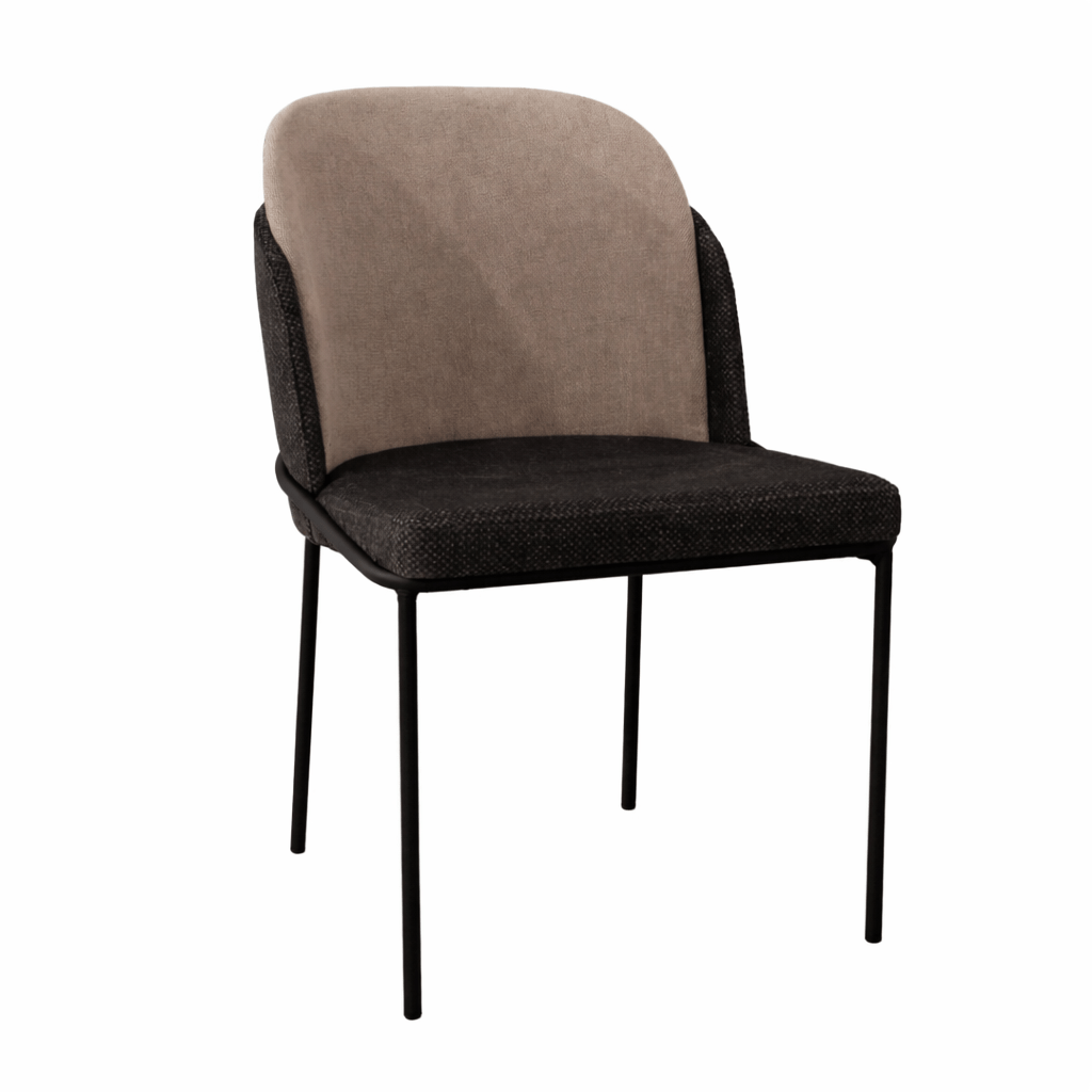 Silla Bergen tapizada 100% poliester crudo y tostado y chasis de acero negro.