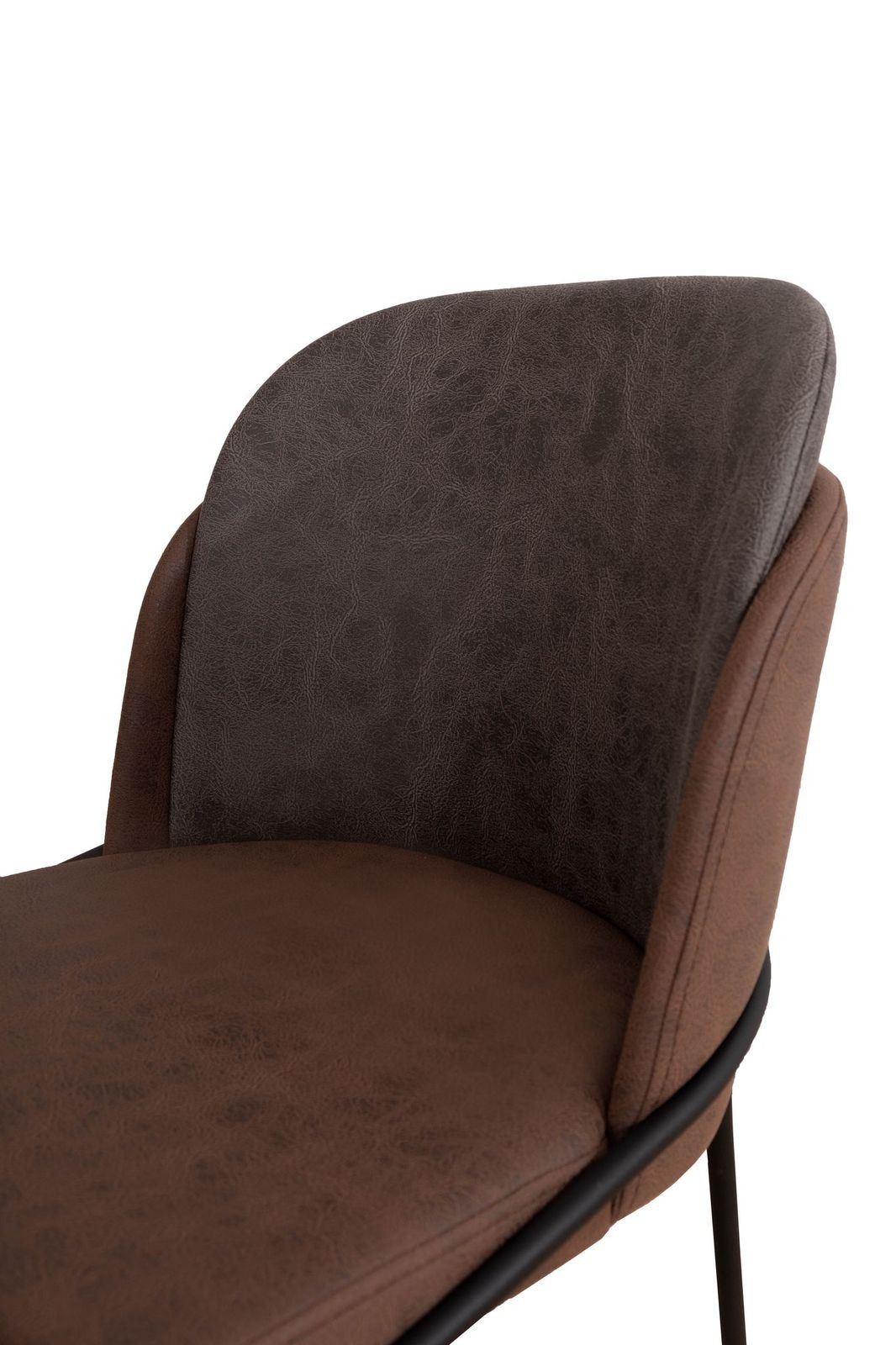 Silla Bergen tapizada 100% en polipiel en marrón-gris con chasis de acero negro.