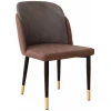 La silla Bergen fabricada patas cónicas en acero negro con taco dorado, tejido en polipiel marrón y gris, es ideal para restaurantes que quieran dar un toque extremado y diferente.