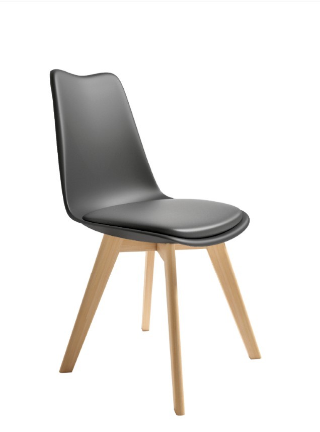 Silla Berlin polipropileno grafito, asiento tapizado en polipiel grafito y patas en madera maciza.