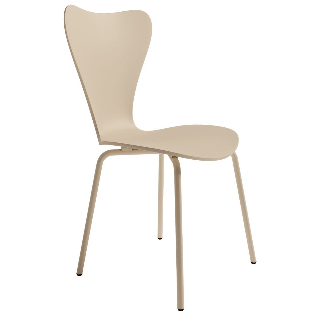 Silla Berna color arena en polipropileno, patas metal a juego.