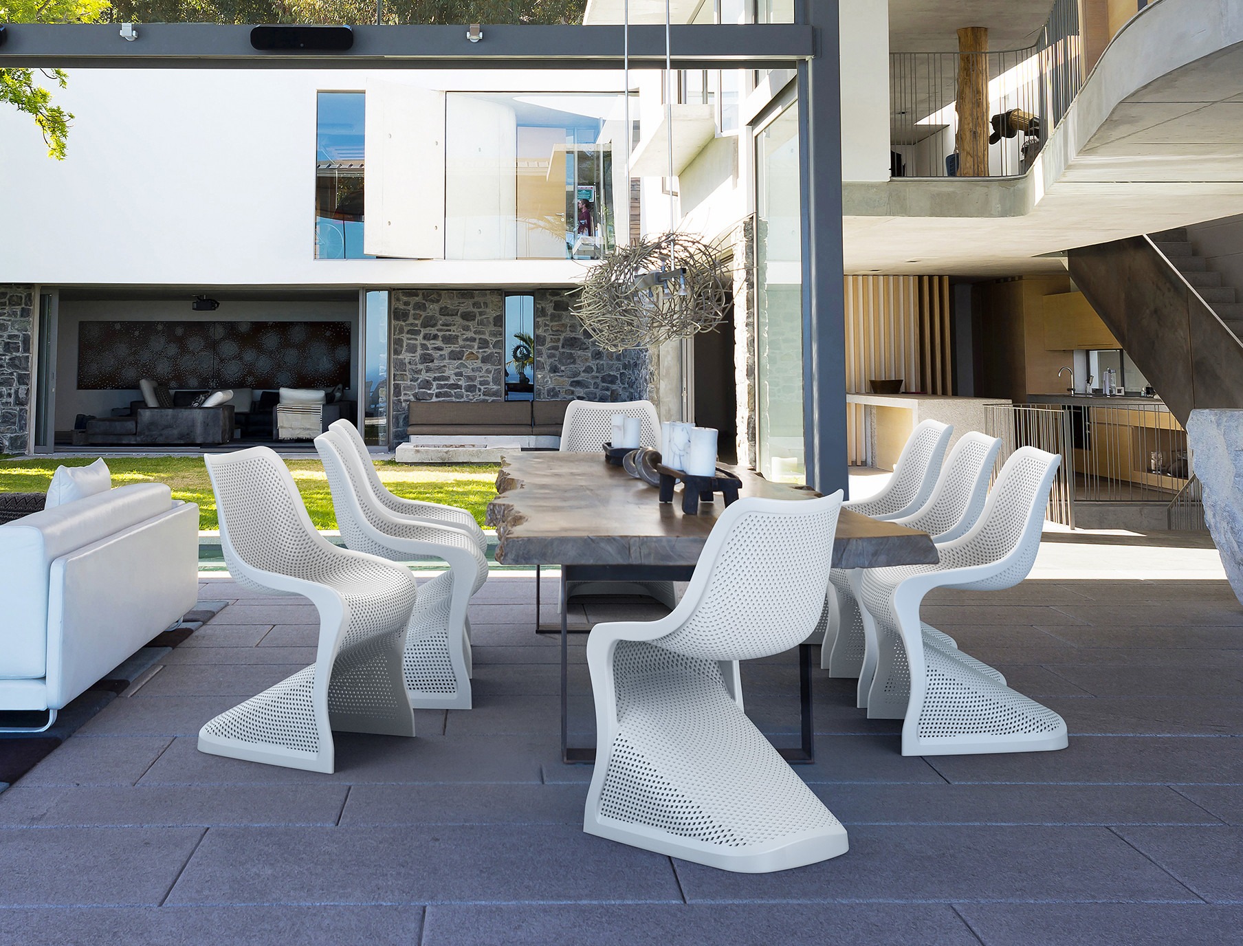 Silla Bloom se produce con una inyección de polipropileno reforzado con fibra de vidrio obtenida mediante la última generación de tecnología de moldeo por aire con tonos neutros.