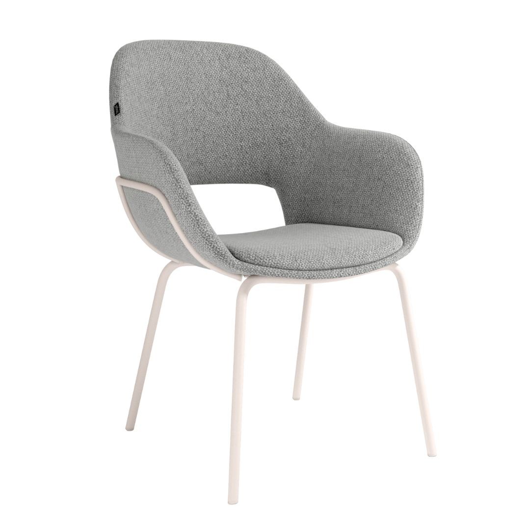 Silla Brisbane color gris, respaldo y asiento tapizado y patas metálicas a juego.