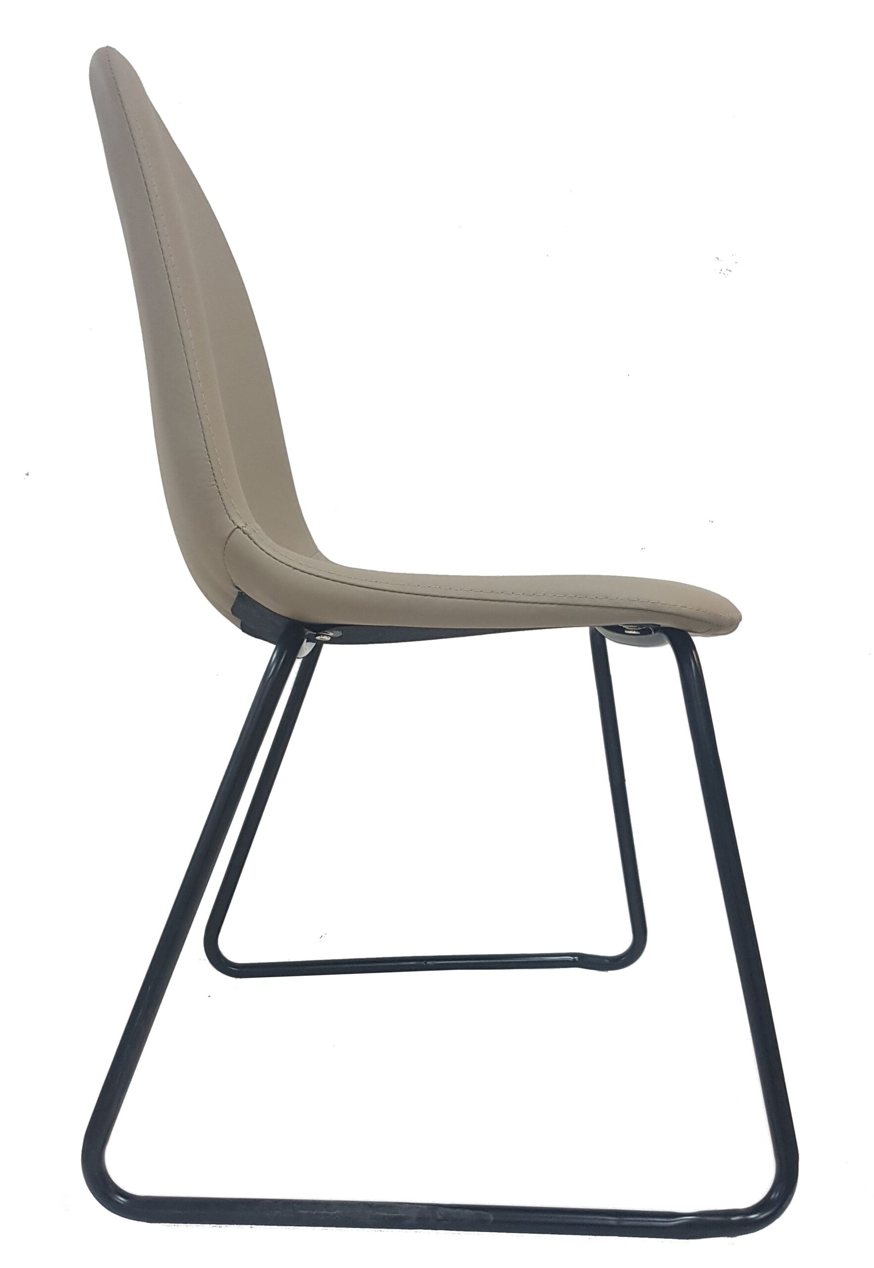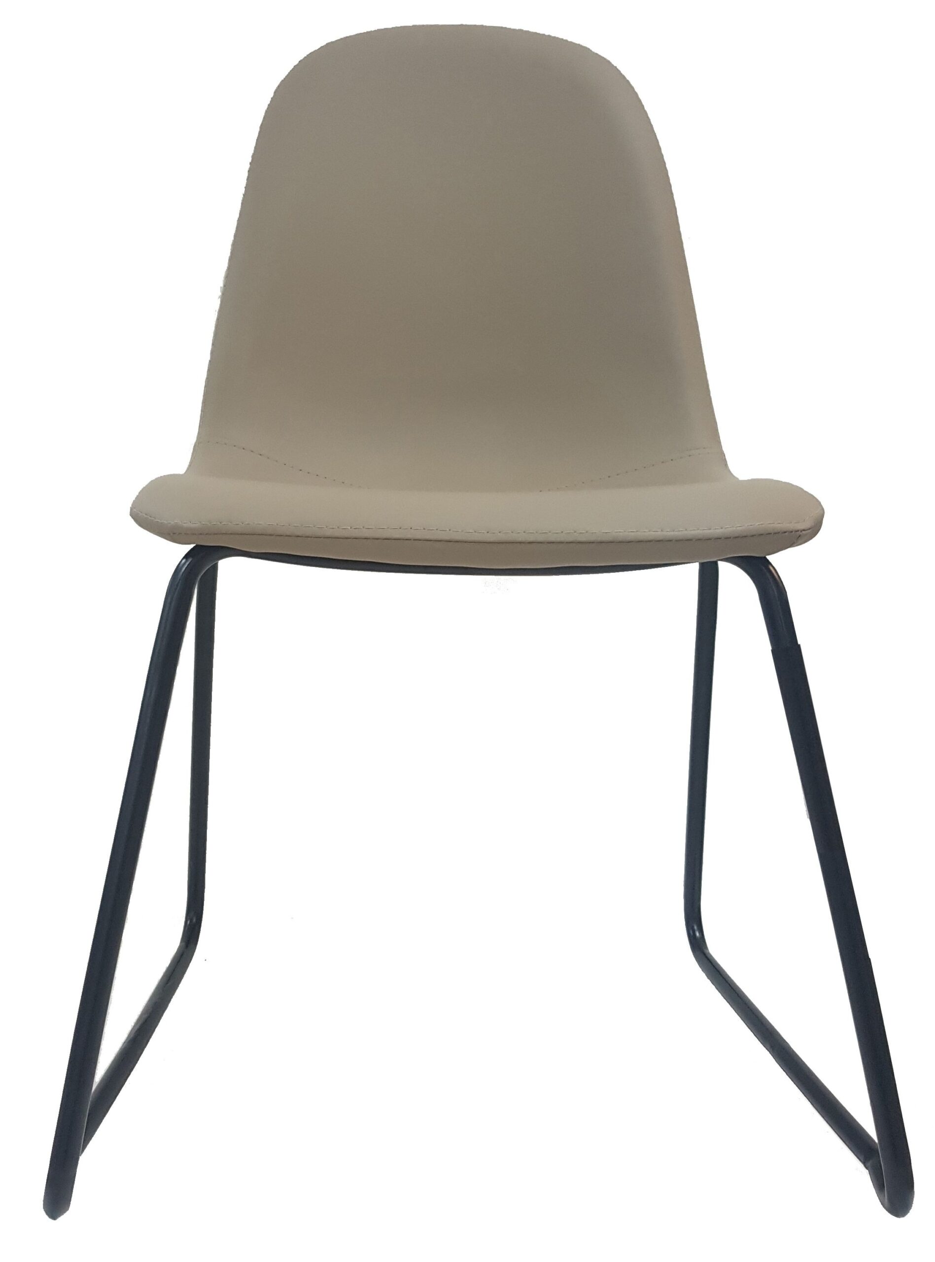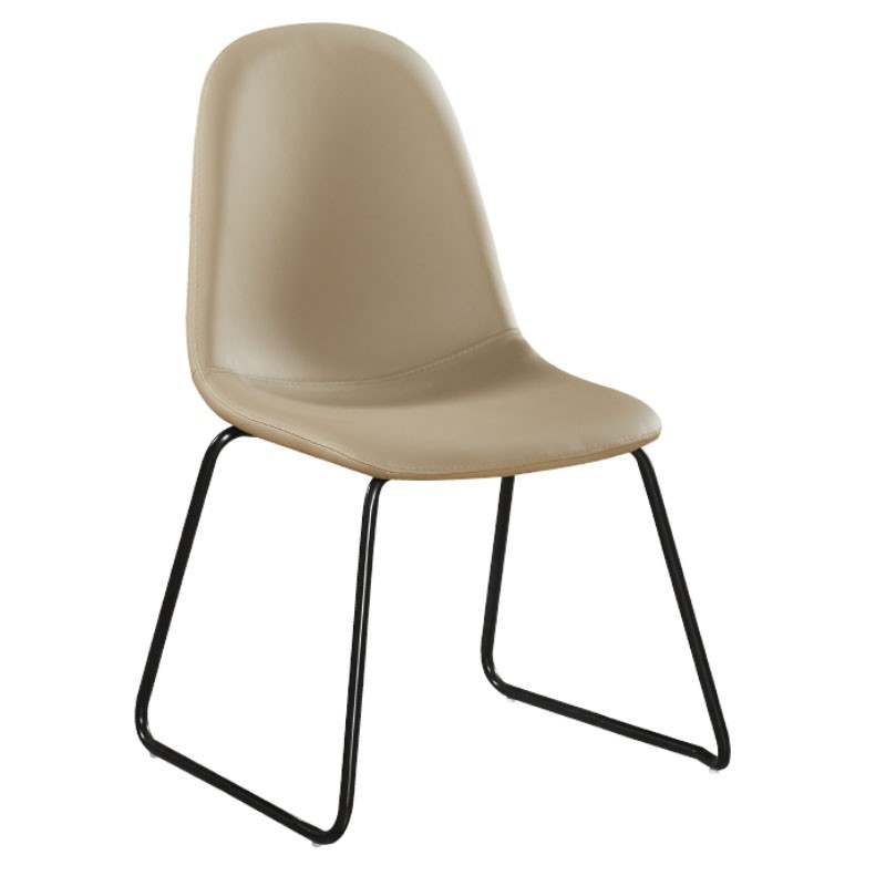 Silla Cannes fabricada con patas patín en metal y asiento y respaldo tapizados en símil piel.