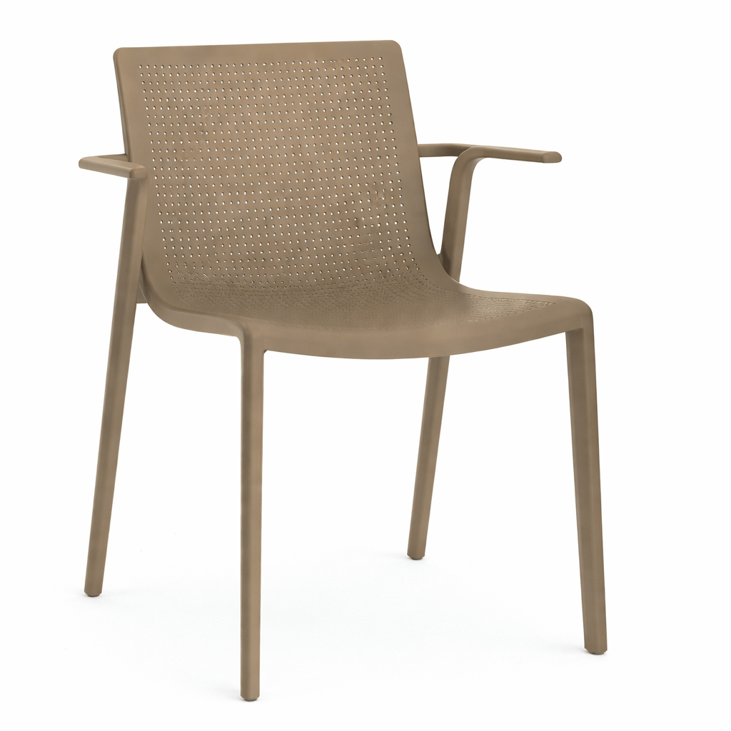 Silla con brazos Beekat de Resol, fabricada con estructura inyectada en fibra de vidrio.