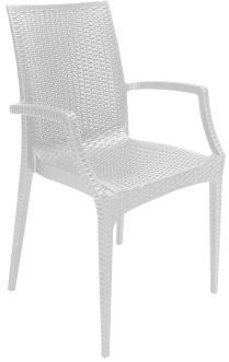 La silla con brazos Bistrot fabricada en polipropileno con efecto ratán, resulta elegante y versátil y es una buena elección para cualquier ambiente, ya que transmite equilibro entre modernidad y tradición.