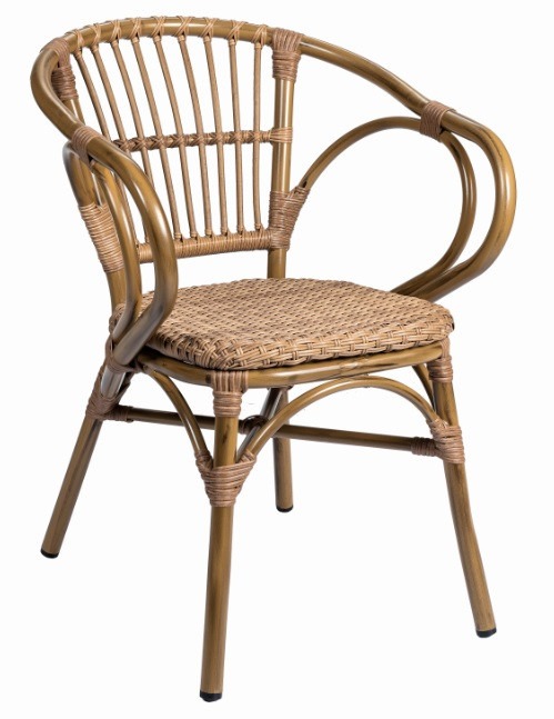 Silla con brazos Bora fabricada en aluminio deco bambú y asiento trenzado atlas.