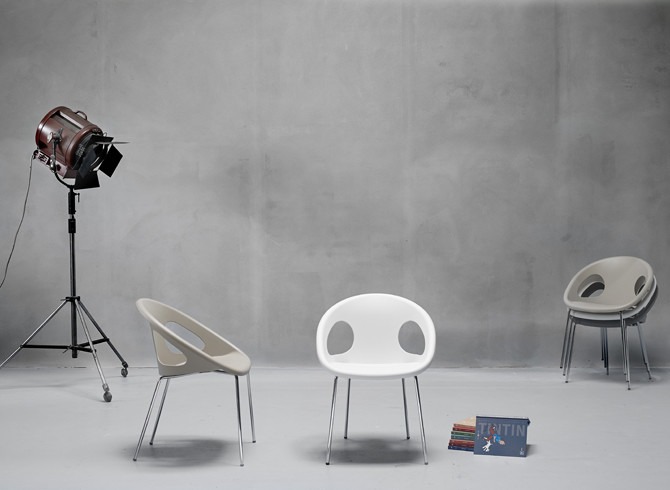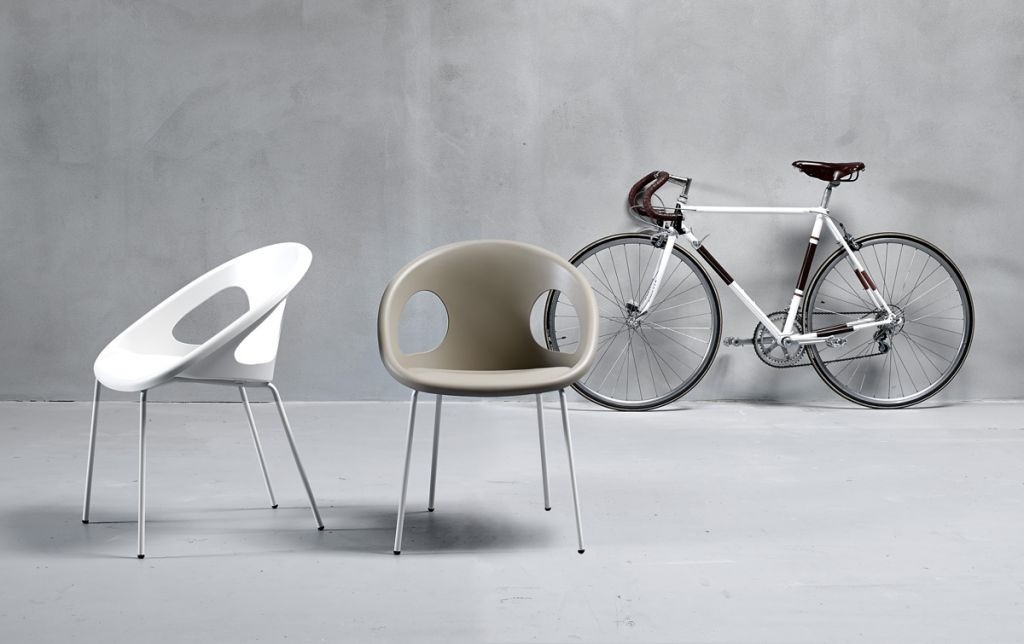 La silla con brazos Drop fabricada en tecnopolímero y acero pintado, es ideal para espacios contract como bares, cafeterías y restaurantes que busquen un mobiliario diferente y original, que de ese toque único a su local.