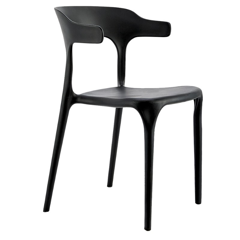 La silla con brazos y apilable Estefania, fabricada en polipropileno de color negro es una silla sencilla y ligera perfecta para cualquier ambiente, dando un aire moderno.