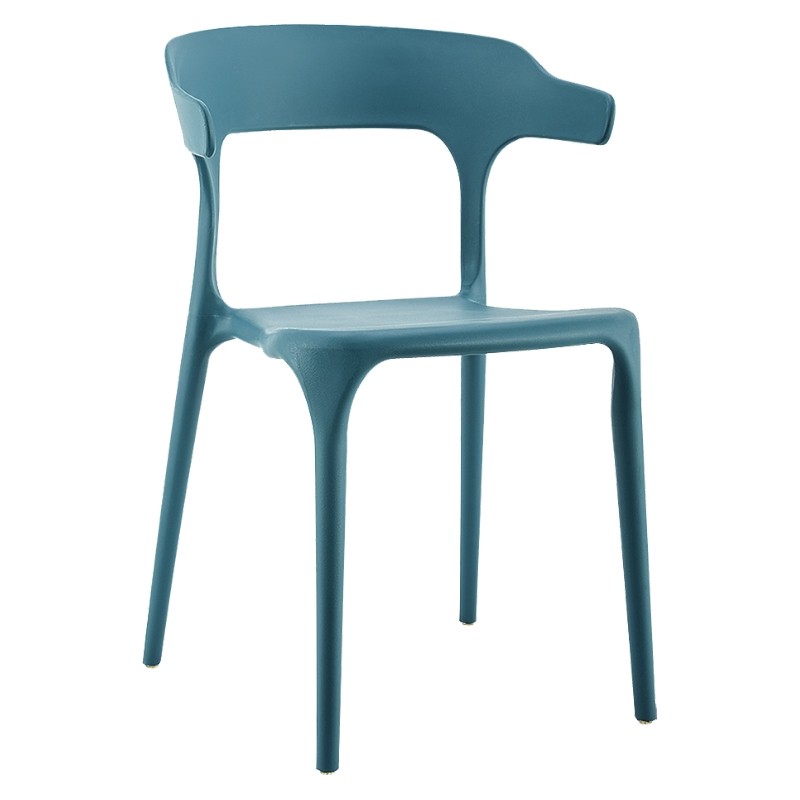 La silla con brazos y apilable Estefania, fabricada en polipropileno de color azul es una silla sencilla y ligera perfecta para cualquier ambiente, dando un aire moderno.