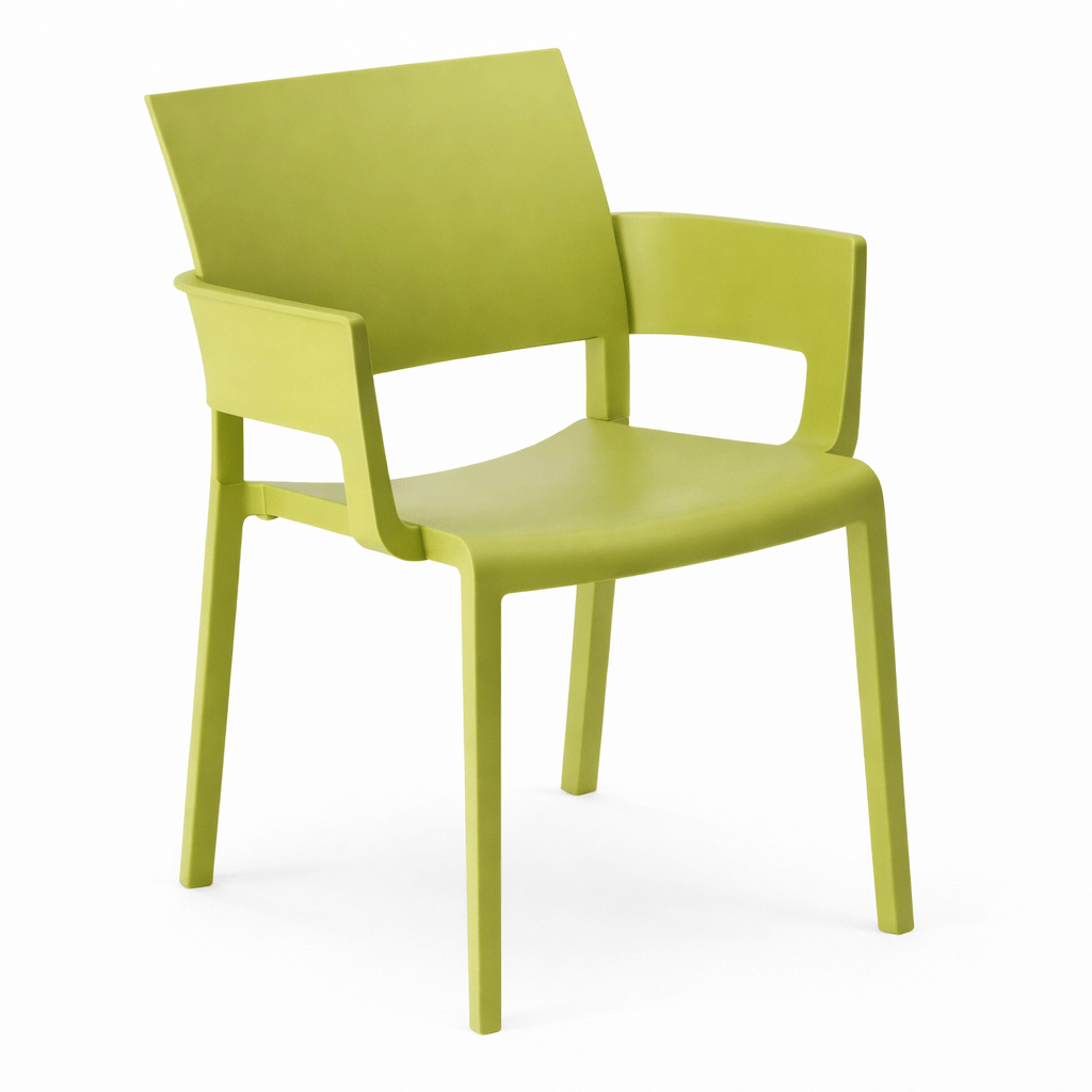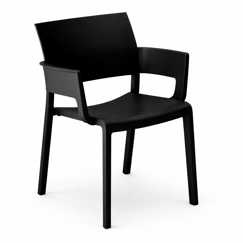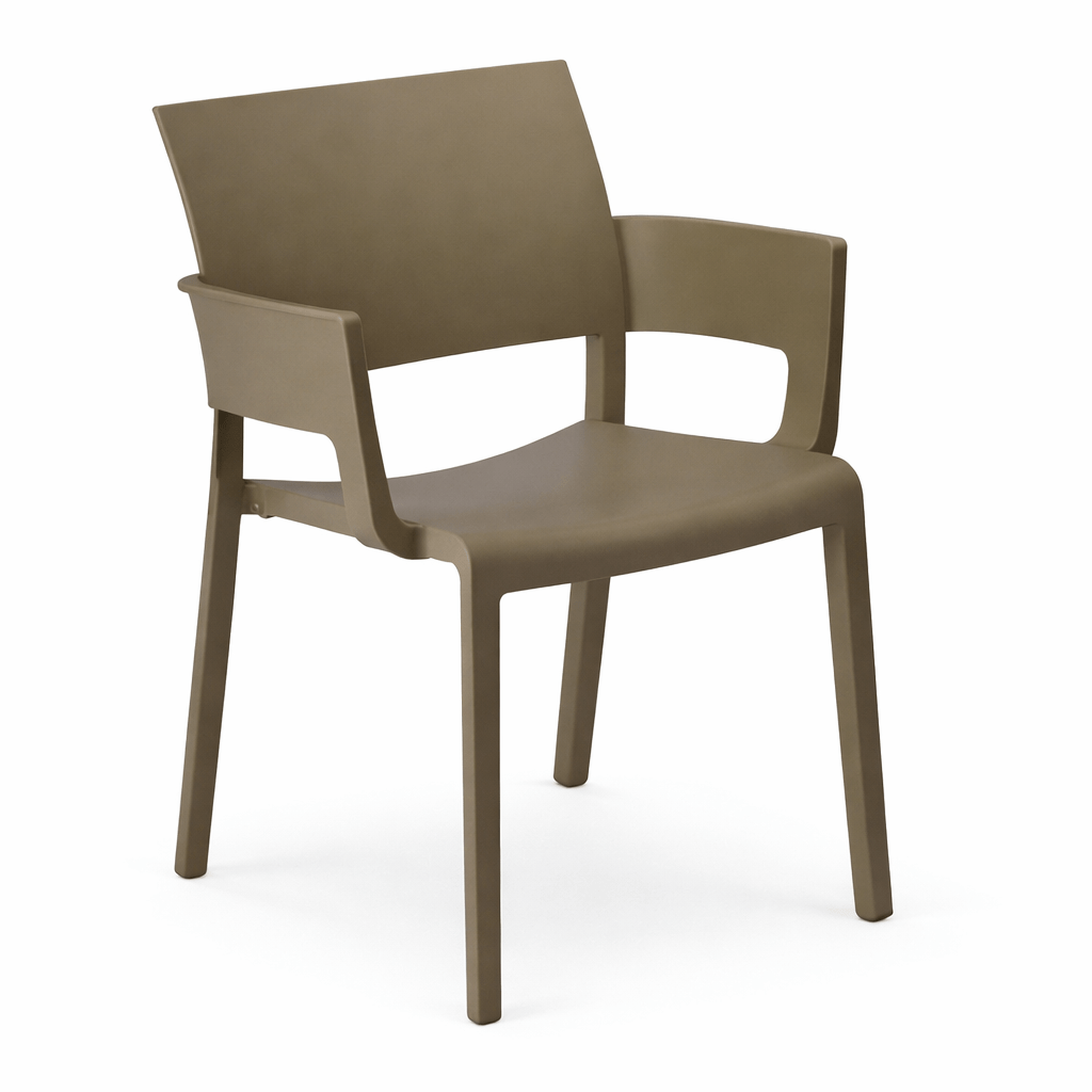 Silla con brazos Fiona de Resol fabricada con estructura inyectada en fibra de vidrio. De uso interior y exterior.