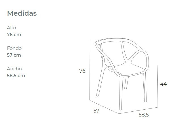 Silla con brazos apilable para uso exterior e interior.