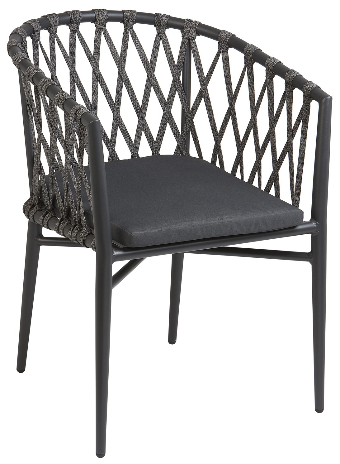 Silla con brazos Linda fabricada en aluminio plastificado y cordón sintético.