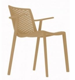 La silla con brazos Netkat de Resol, fabricada con estructura inyectada en fibra de vidrio, es ideal para bares, restaurantes, hoteles y apartamentos turísticos que busquen una silla con un diseño bonito.