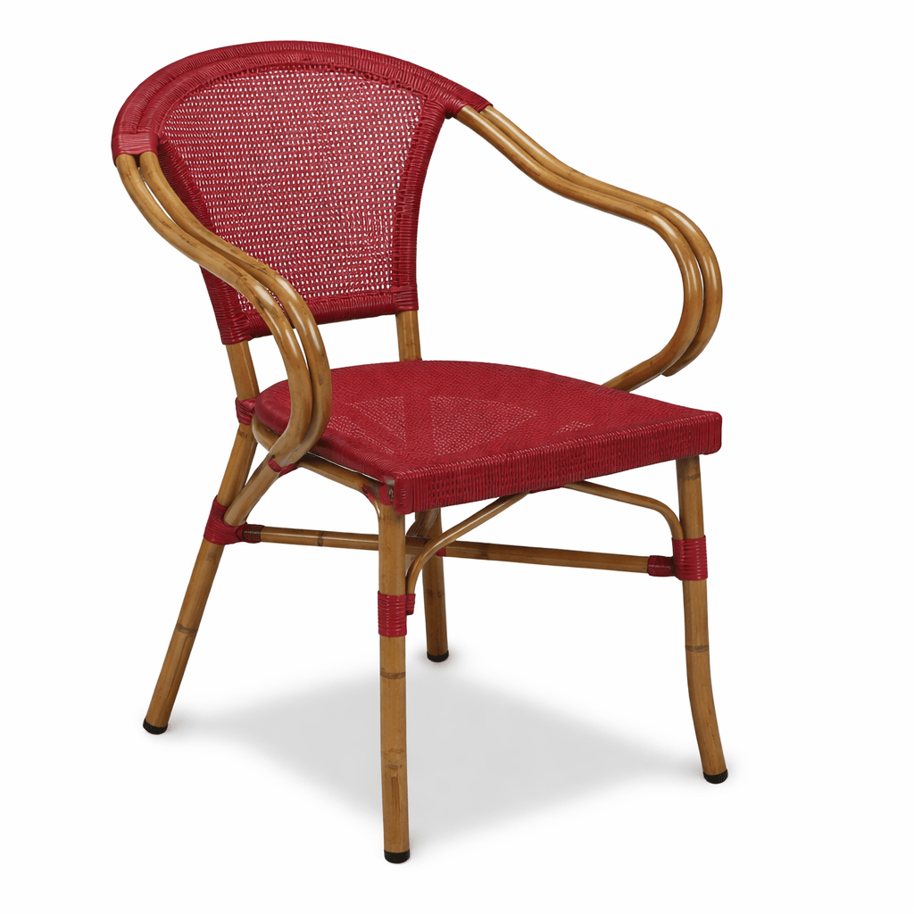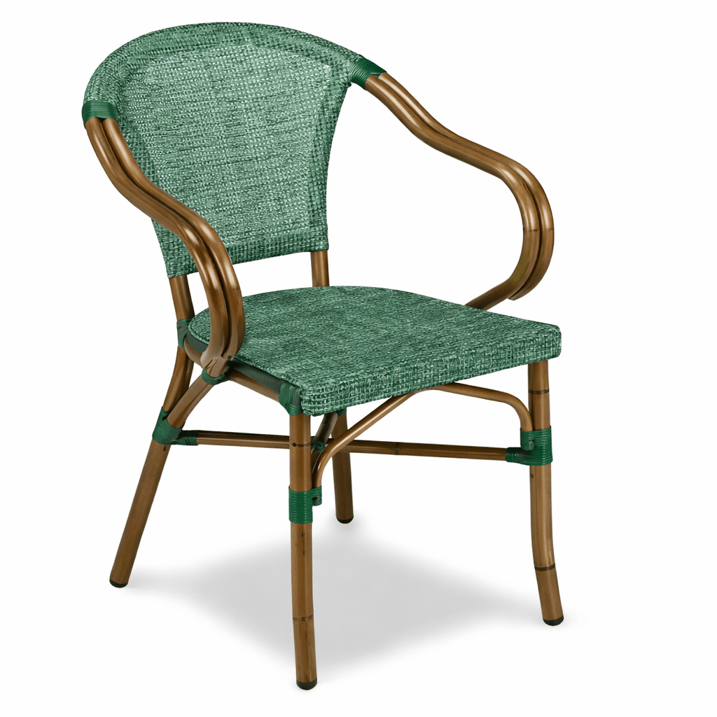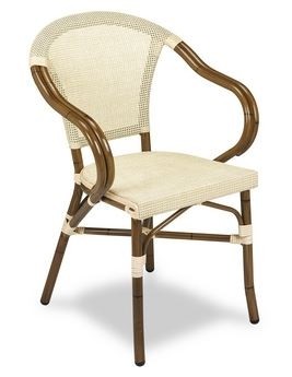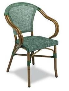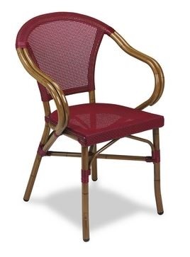La silla con brazos Odal fabricada en aluminio plastificado y textilene ,es ideal para bares y restaurantes que busquen una silla con brazos cómoda y elegante.