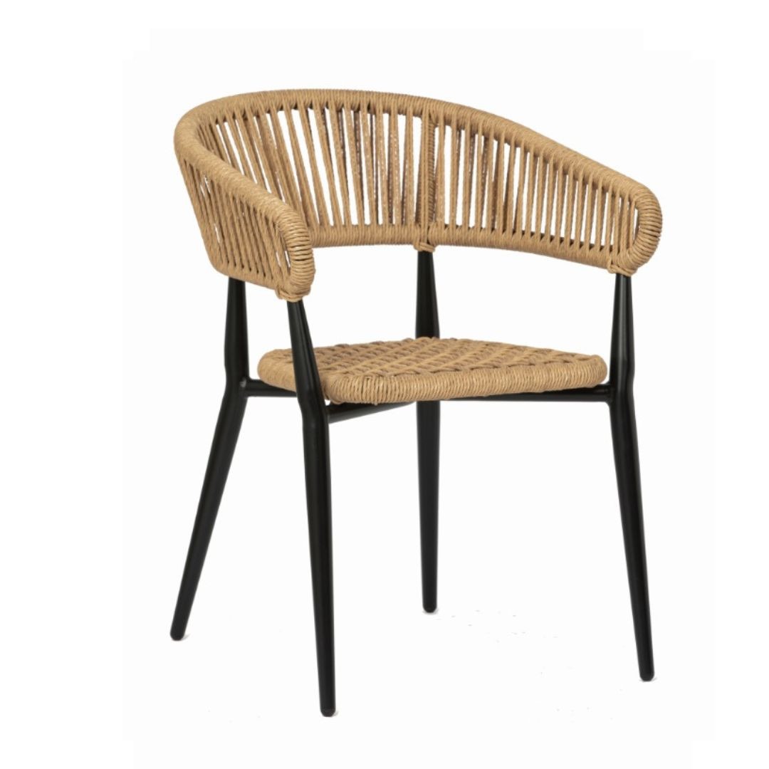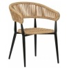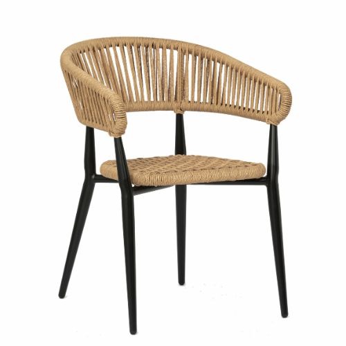 Silla con brazos Provenza fabricada en aluminio negro y cuerda en color crema.
