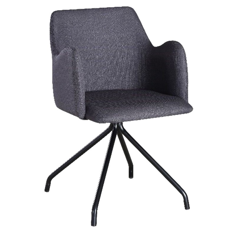 Fabricada: el pie cuádruple central en metal pintado en negro y asiento, respaldo y brazos tapizados.