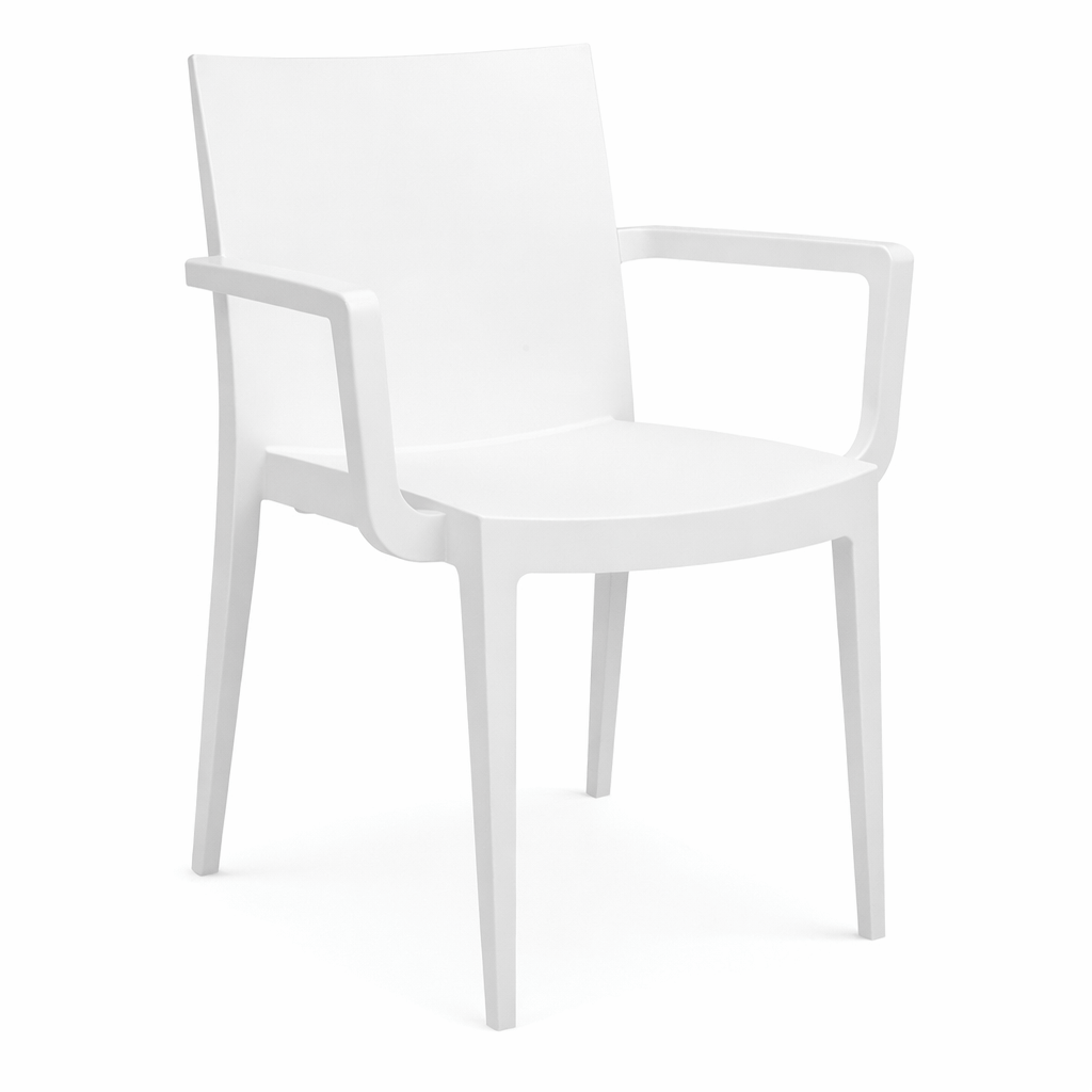 La silla con brazos Venice fabricada en polipropileno, de diseño simple, elegante y versátil es ideal para restaurantes y cafeterías de estilo minimalista.