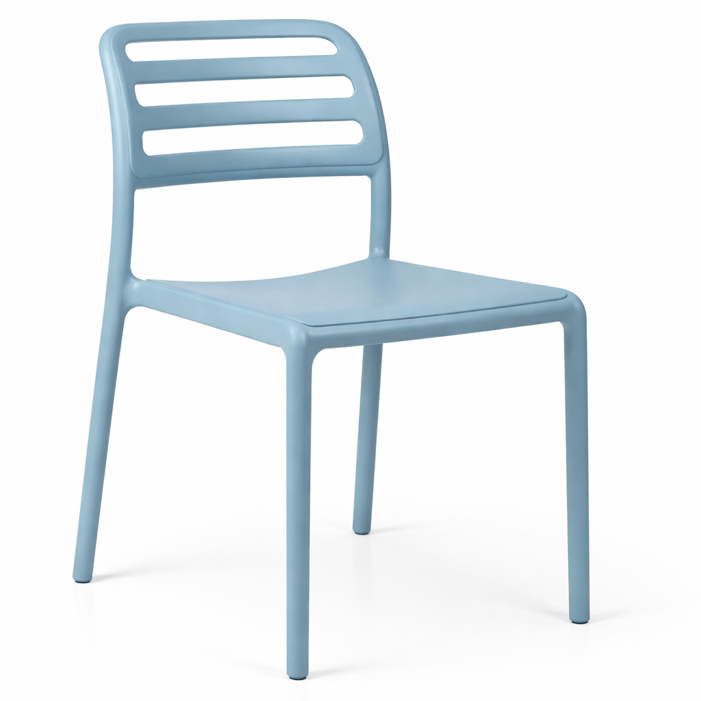 La silla Costa Bistrot de Nardi es una silla apilable apta para espacios al aire libre. Fabricada en polipropileno y reforzada con fibra de vidrio la dotan de una silla de alta calidad y resistencia. Incluye tacos antideslizantes.