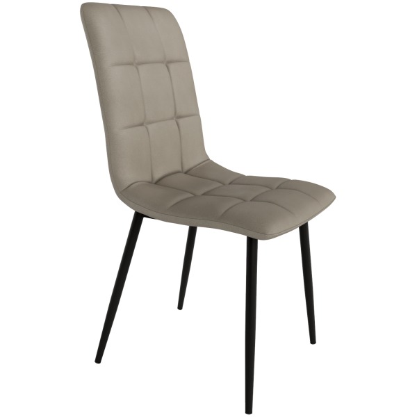 Silla Denver con asiento y respaldo tapizados y patas metálicas en negro. .