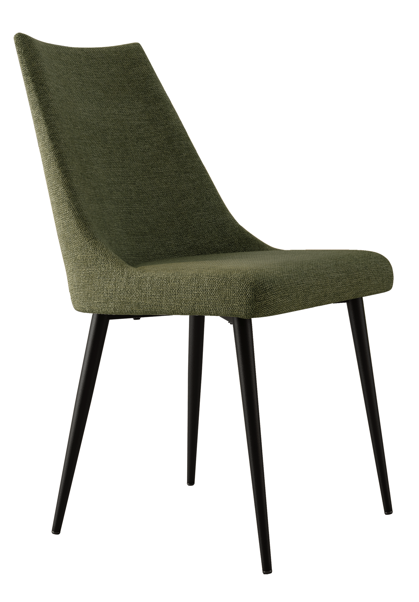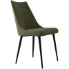 Fabricada con asiento y respaldo tapizados y patas en metal negro.
