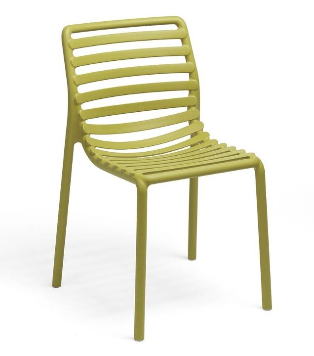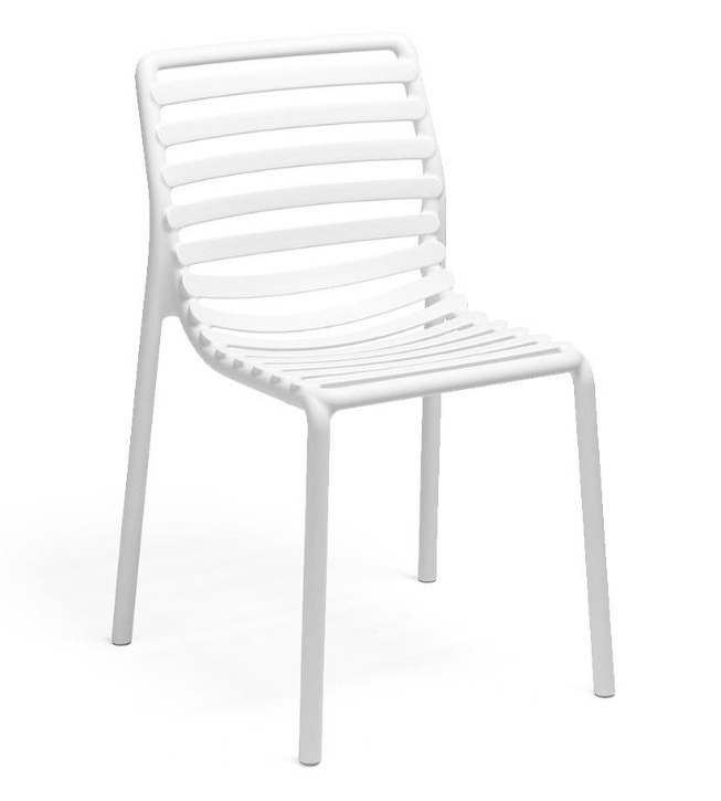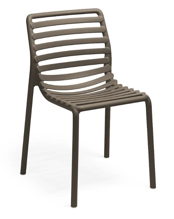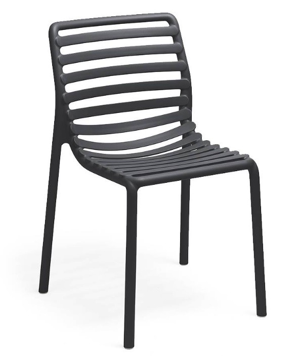 La silla Doga Bristrot de Nardi está fabricada en polipropileno y fibra de vidrio tratado anti UV y teñido en masa.