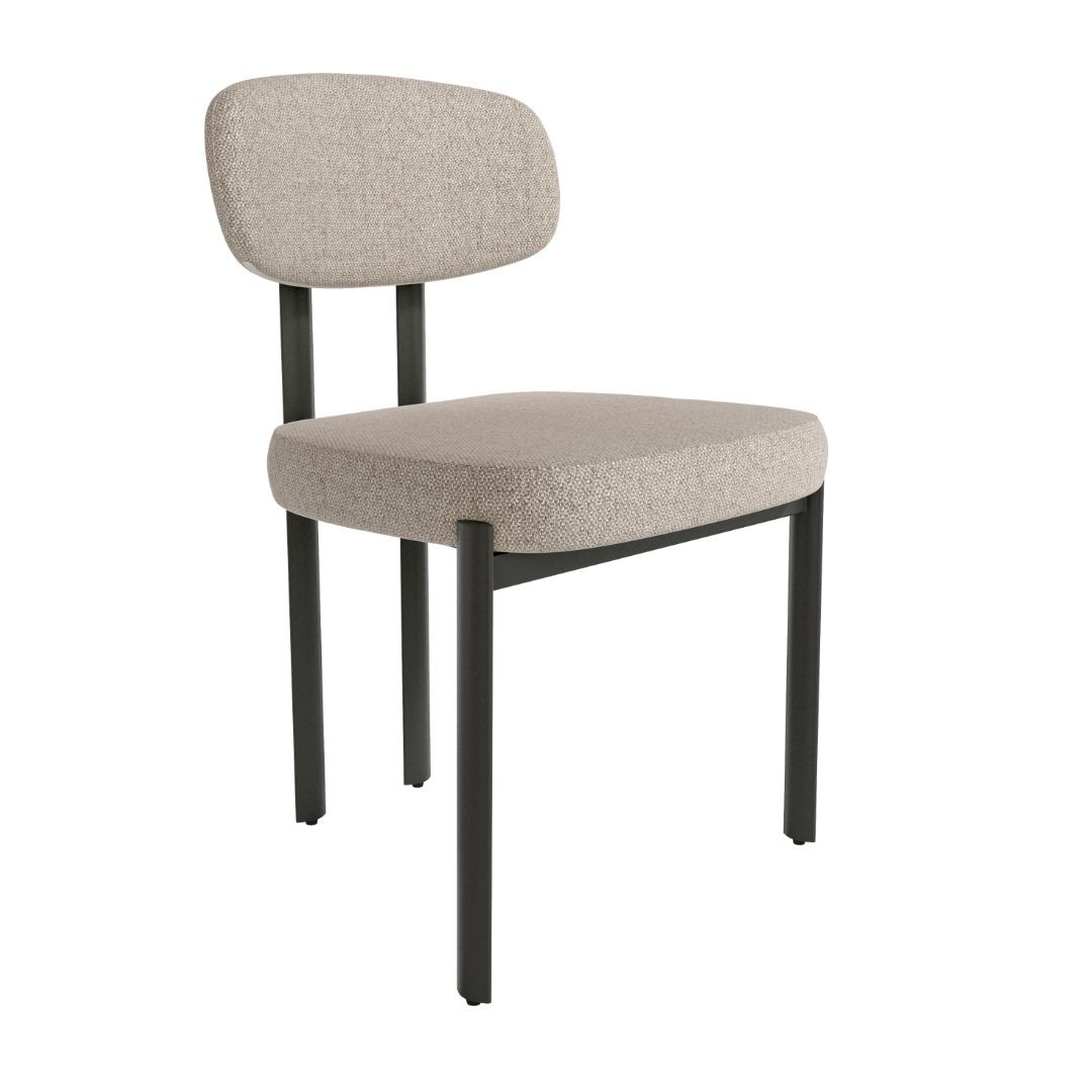 Silla Durban con pata metálica negra, respaldo y asiento tapizado marrón.