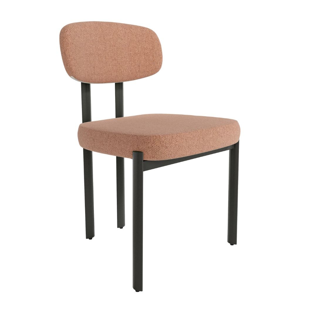 Silla Durban con pata metálica negra, respaldo y asiento tapizado salmón.