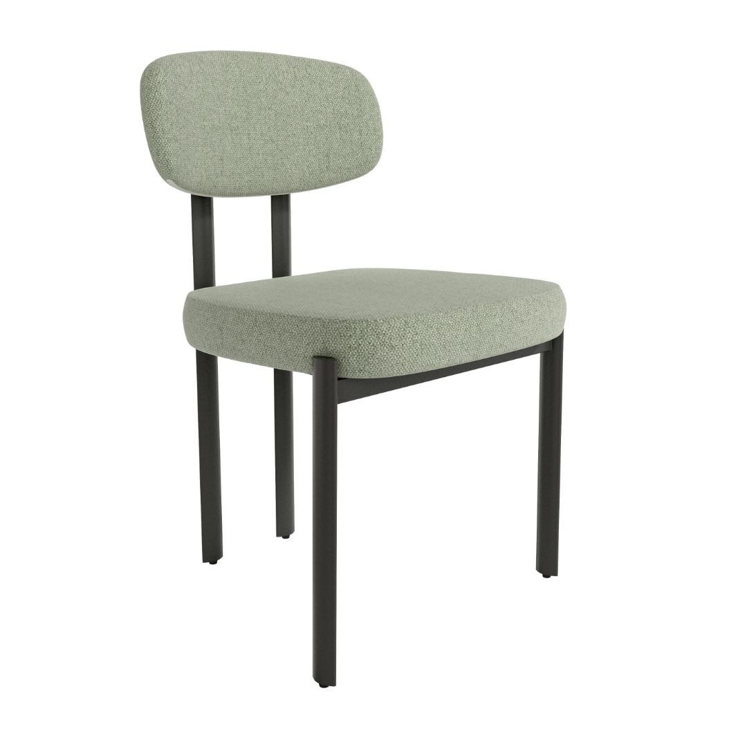 Silla Durban con pata metálica negra, respaldo y asiento tapizado verde.