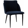 Silla Flam tapizada 100% en poliéster en azul y patas cónicas en acero negro.