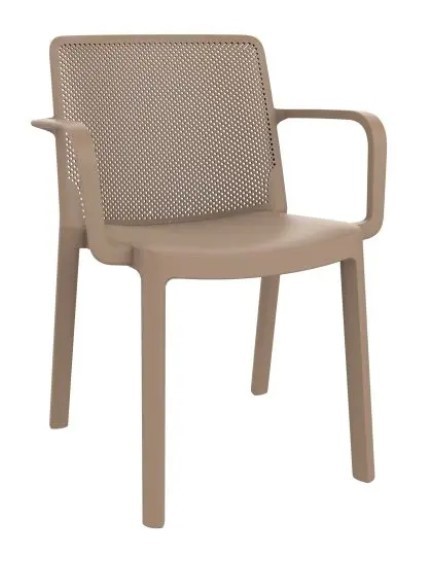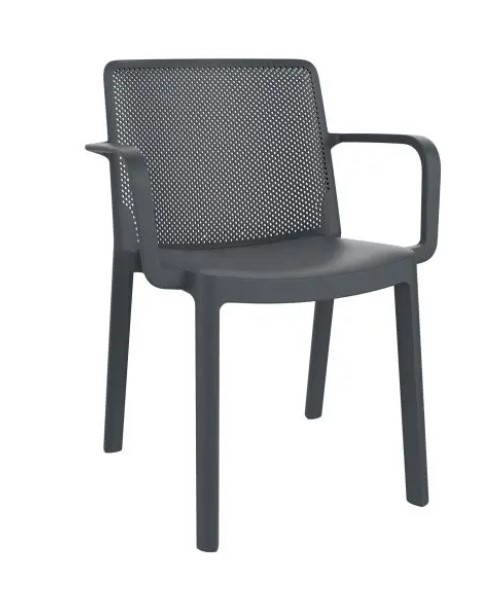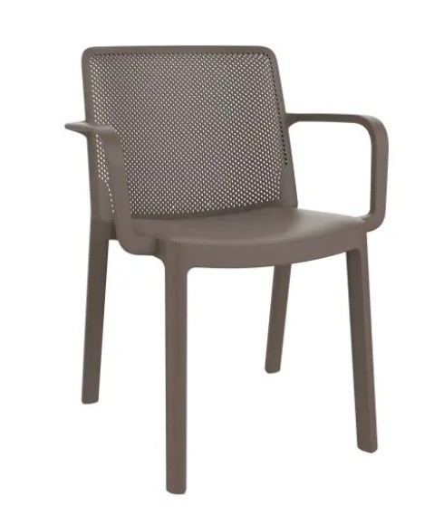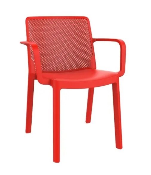 Silla Fresh con brazos de Resol, fabricada en polipropileno y fibra de vidrio.