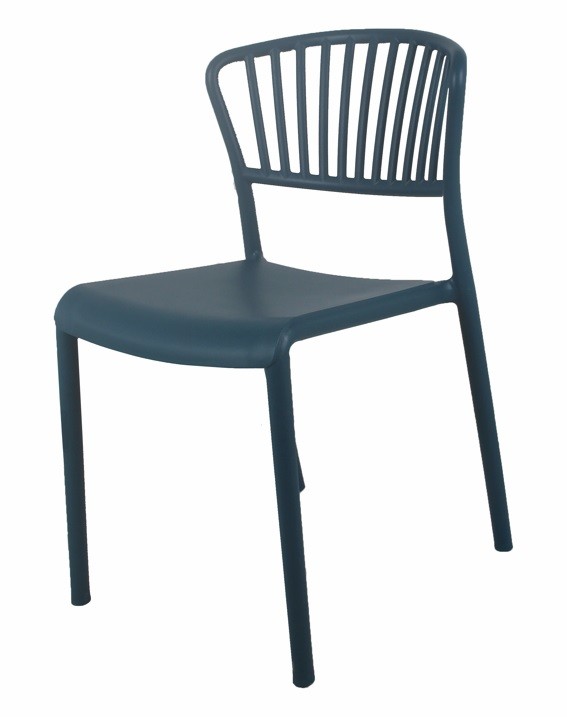 La silla Génova, está fabricada en polipropileno de color azul y es ideal para bares, cafeterías y restaurantes.