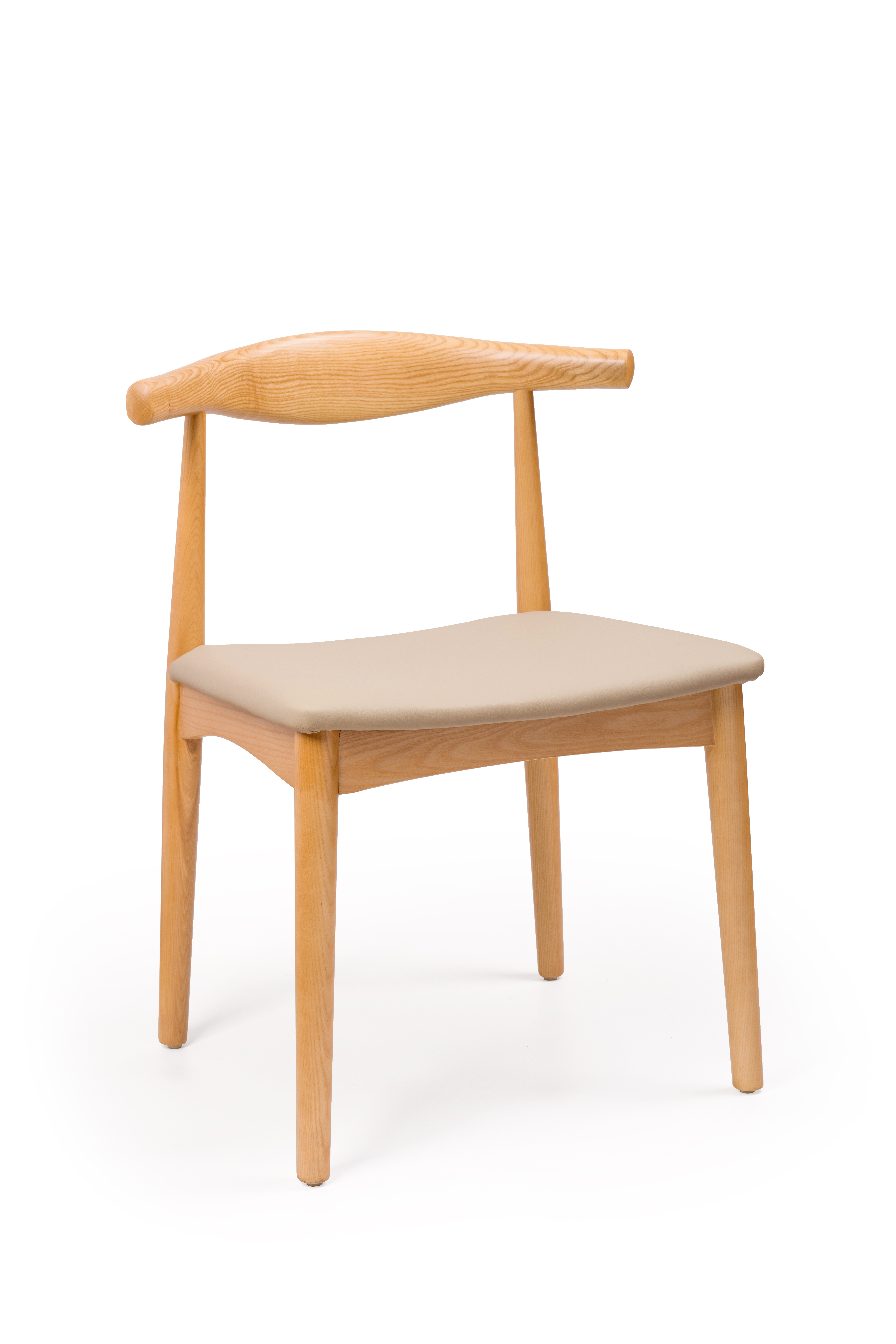 Silla Gotland con estructura en madera de fresno, asiento compuesto por cojín con relleno de fibra siliconada recubierto con funda poliuretano waterproof, color beig.