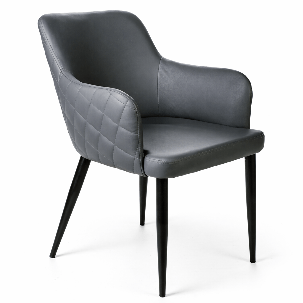 Silla Grasse con brazos fabricada en símil piel y patas metálicas.